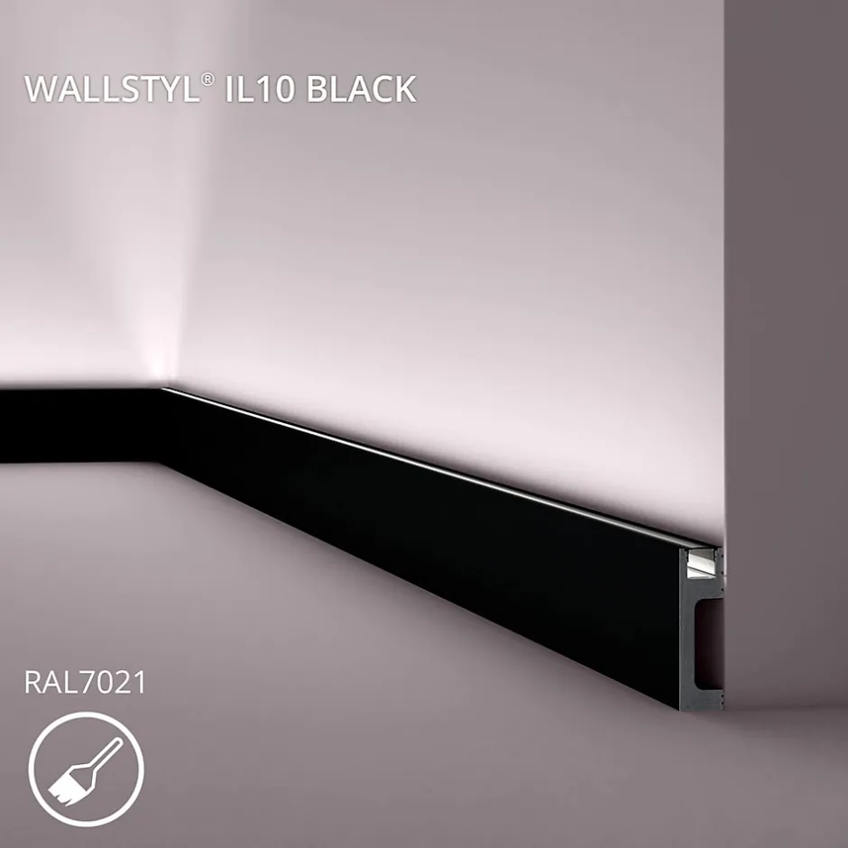 - Plinthe, dimensions: 200 cm x 2,3 cm x 8 cm. La surface est prépeinte en noir (RAL 7021)