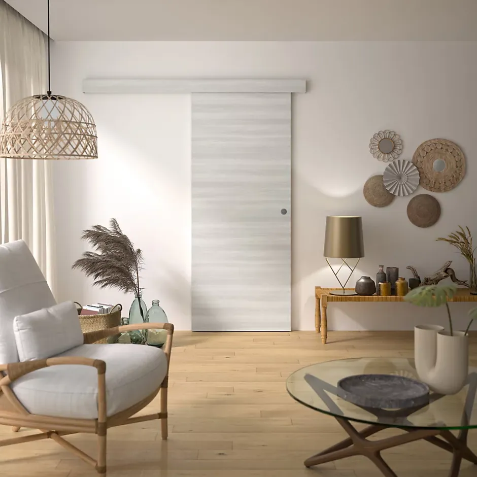 Kit Optirail Bilbao 2, Porte Coulissante, rail et bandeau Cache-Rail Mdf Revêtu 204 x 83 x 3,6 cm