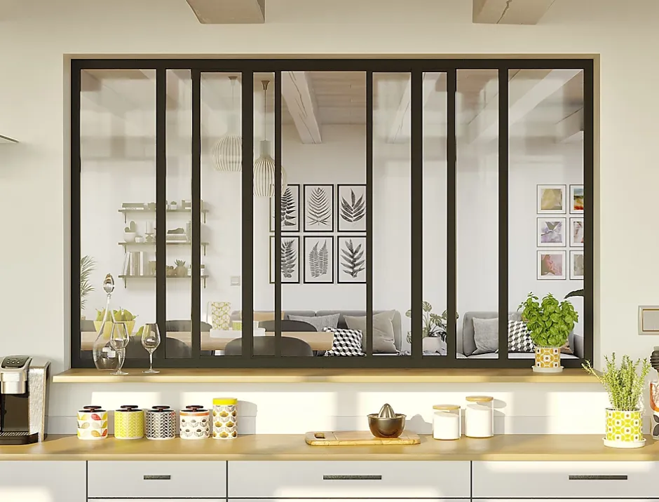 La verrière d’intérieur coulissante en aluminium permet de séparer les espaces tout en laissant passer la lumière. Disponible en 3, 4 et 6 carreaux, la verrière est constituée de profils noir en aluminium et de verre trempé 4 mm. H 1100 x L 1832 mm (prévoir une ouverture de H 1105 x L 1837 mm.). Fabrication française. Garantie 2 ans.