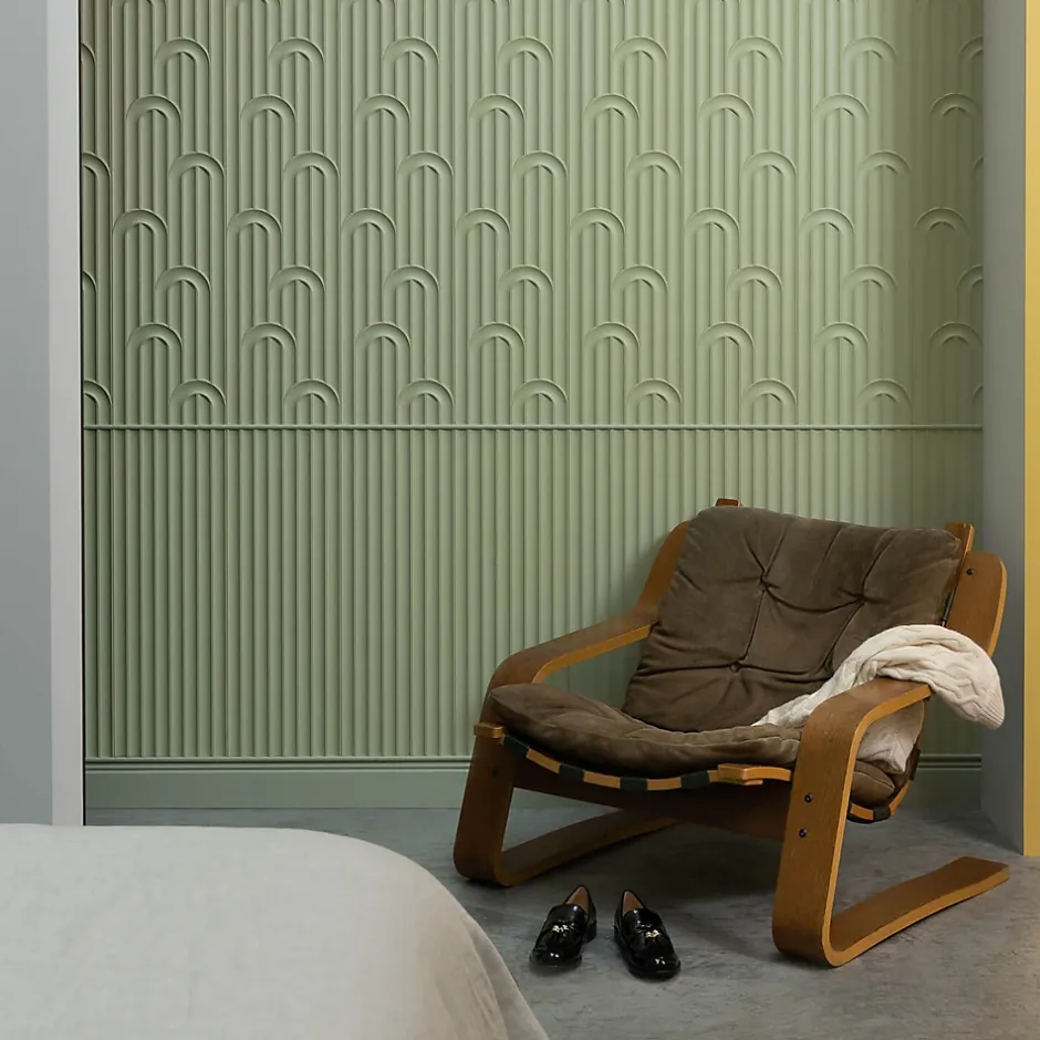 Ces panneaux muraux 3D W212 de la famille VALLEY LOOP apporte une touche art déco dans vos intérieur. La trame élégante semble se décrocher de la linéarité apparente, semblable à un jardin Japonais. Que vous optiez pour une composition à la verticale, à l’horizontale ou même de biais, tout est possible ! Ces produits s’accordent parfaitement avec la référence PX209. N’hésitez pas à faire appel à notre bureau d’études pour calculer les quantités de colles nécessaires (FDP500 ou FDP700).Comme toutes les références ORAC, cette référence doit être peinte pour la protéger des UVs.