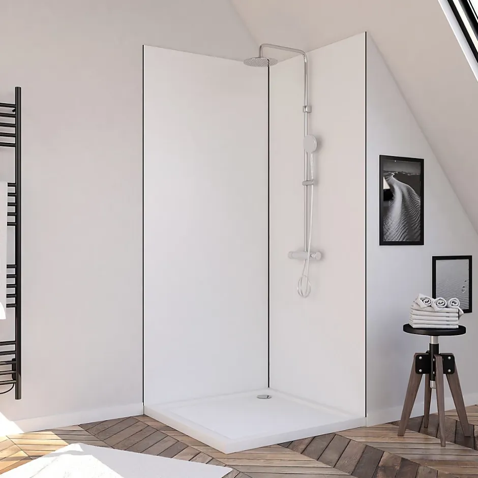 Pack de 2 panneaux muraux de salle de bains, blanc avec profilés noirs, l.90+90 x H.210 x P.0,3 cm, Galedo Alucolors