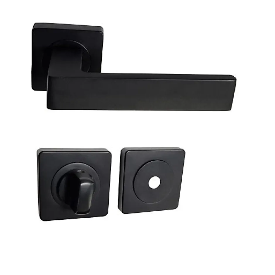 Paire de Poignées de Porte en ALUMINIUM « NATALYA » Noire . Section de la poignée : 24 mm x 8 mm Longueur de la béquille : 124 mm Rosace carrée Noire : 52 mm Carré fendu : 7 mm x 110 mm Ressort de Rappel : Oui Pour porte : de 40 mm à 60 mm Télécharger et/ou imprimer la Fiche Technique disponible ci-dessous !