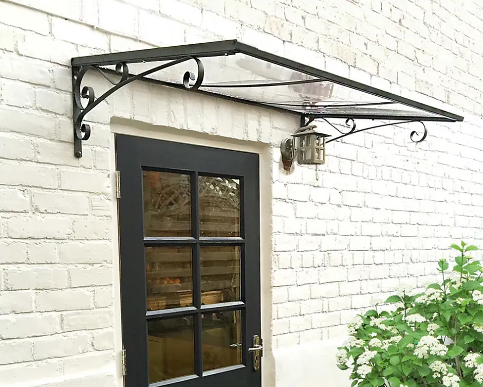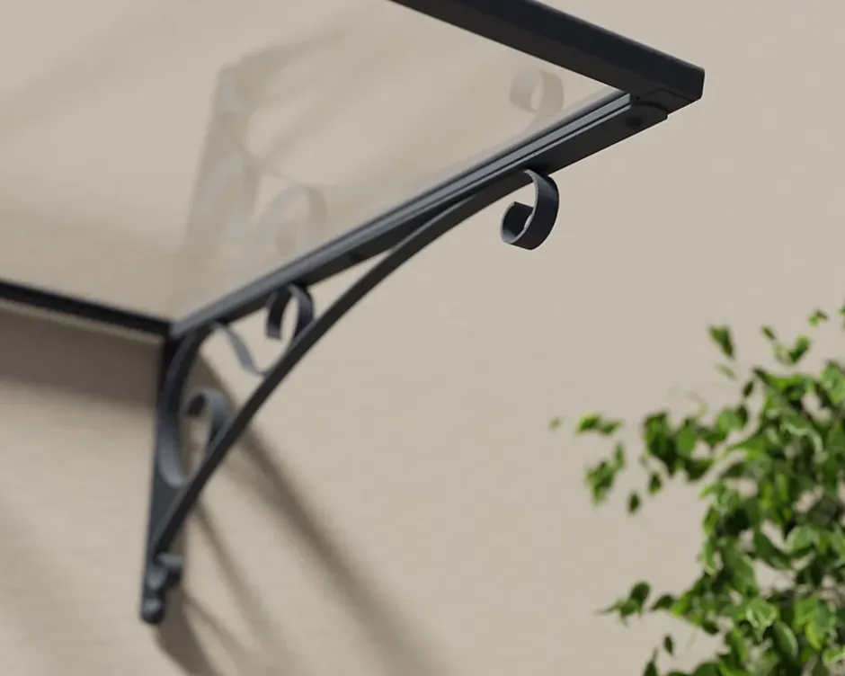 L’auvent de porte Venus est la combinaison parfaite du moderne et du rétro. Avec des panneaux en polycarbonate et un cadre en aluminium, vous disposez d’un produit de qualité supérieure. Les volutes en acier lui donnent une touche d’art nouveau. Cet auvent de porte aussi robuste qu’esthétique améliore non seulement l’aspect et la fonctionnalité de votre maison. La marquise Venus vous protège, vous, votre porte, votre entrée et tout ce qui se trouve en dessous. Extrêmement résistant, il est facile à installer et conçu pour résister aux conditions climatiques difficiles. Avec l’auvent de porte Venus, vous choisissez la protection dont vous avez besoin, dans le style que vous désirez et tout ça pour de nombreuses années.