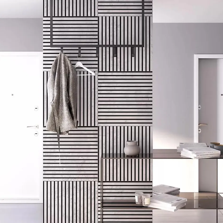 - Panneau à lattes décoratif, adapté au salon, au bureau ou au studio d’enregistrement.