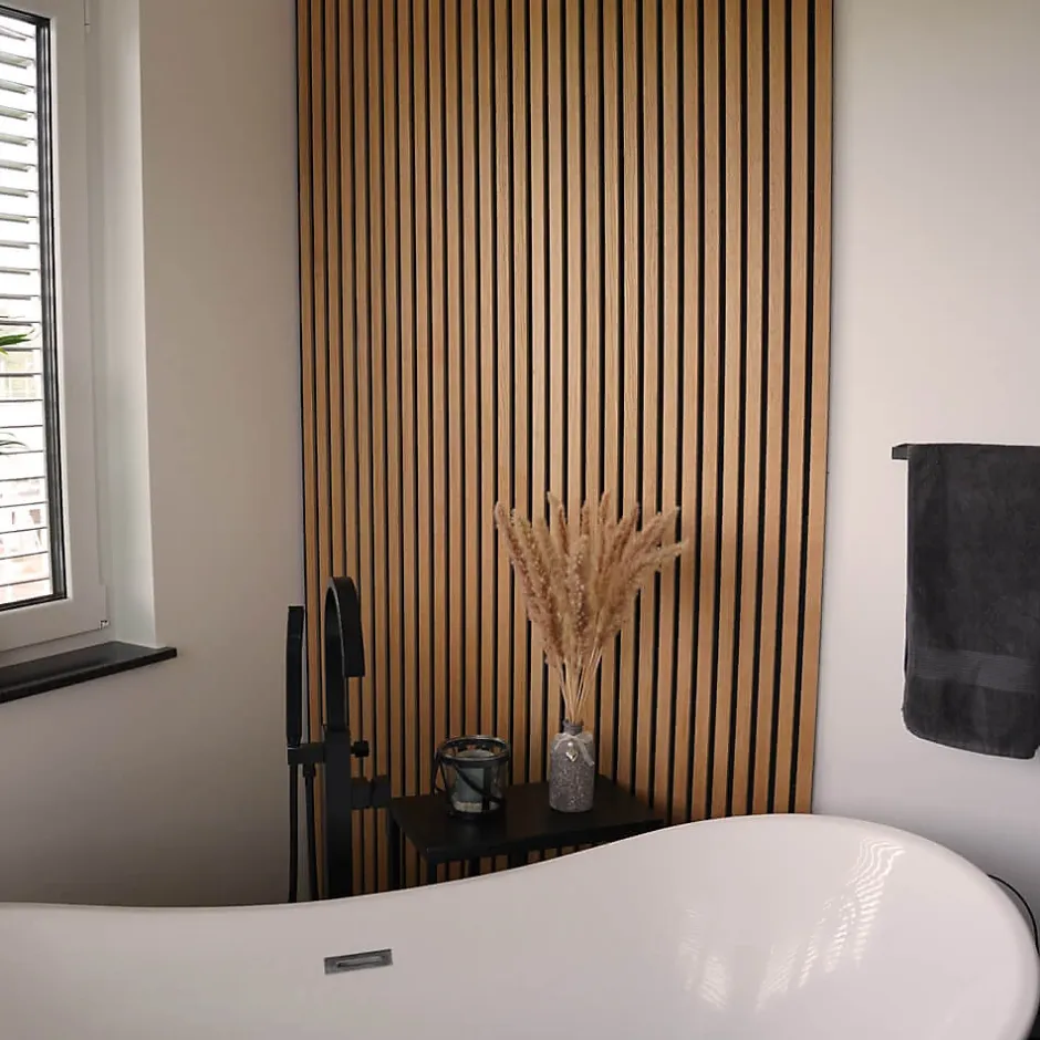 Dimensions par panneau acoustique (L x l x H) : 240 x 40,5 x 2,1 cmMatériau : feutre en polyesterCouleur : Oiled OakInstallation rapide et facile – Do it yourselfDesign scandinave à partir de matériaux respectueux de l’environnementAtténue le bruit grâce au feutre acoustiquePeut être raccourci et découpé individuellementTransforme tes murs en un véritable point fort – avec les panneaux muraux SONIC. Le design moderne crée immédiatement une atmosphère élégante et confère à chaque pièce un caractère exclusif.Les panneaux muraux SONIC convainquent par leur finition de qualité et leur design intemporel. Qu’ils soient utilisés comme détail discret ou comme élément de décoration marquant, ils apportent chaleur, élégance et un sentiment de modernité dans tes pièces. Grâce à leur flexibilité d’utilisation, tu peux combiner les panneaux selon ton style et faire ainsi du salon, de la chambre à coucher, du bureau ou du couloir un véritable point de mire. Le montage est simple et te permet de réaménager tes murs rapidement et facilement.Avec les panneaux muraux SONIC, fais une déclaration claire dans ta maison. Commande maintenant et donne à tes pièces le look moderne et raffiné qu’elles méritent !Remarque : veuillez noter que la couleur des placages de bois peut varier en fonction du lot. De plus, la couleur des panneaux peut apparaître différemment selon l’exposition à la lumière. Ces caractéristiques naturelles ne constituent pas un motif de réclamation. Détails du produit:Panneau mural de style scandinaveInsonorisantMontage rapide et facilePeut être raccourci et découpé individuellement