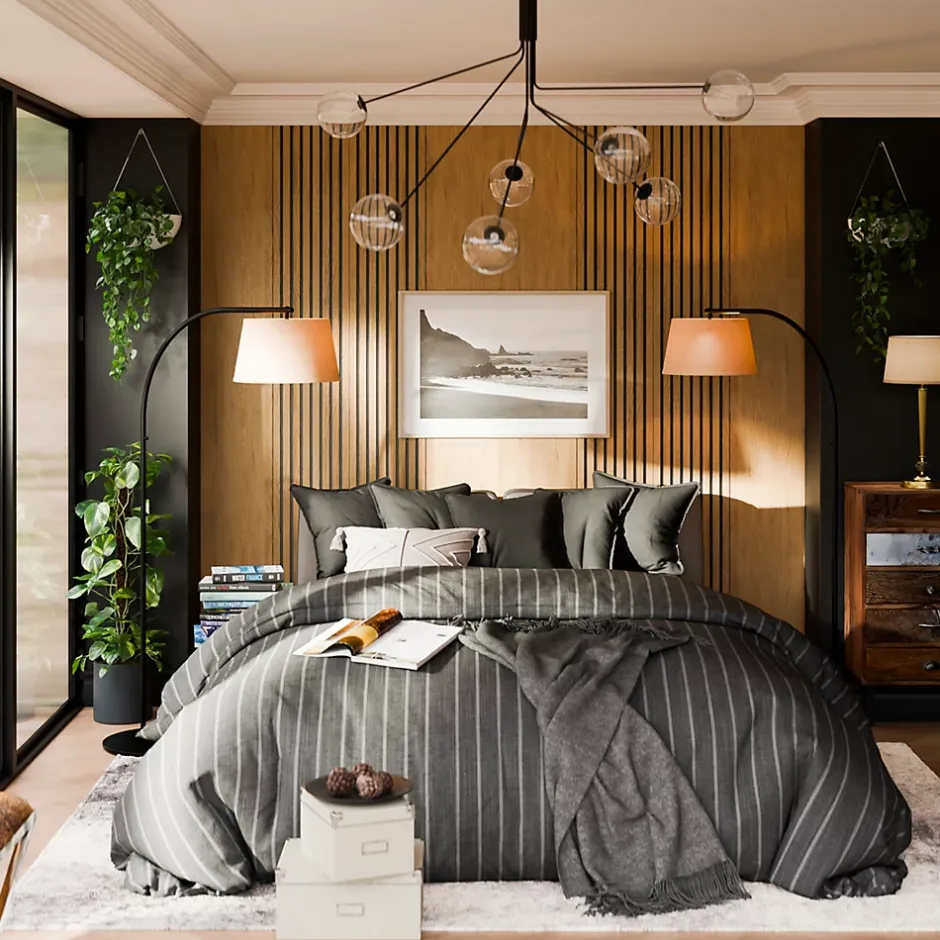 Panneau décoratif à lamelles Python en mdf imitation chêne fond noir 275X60 cm