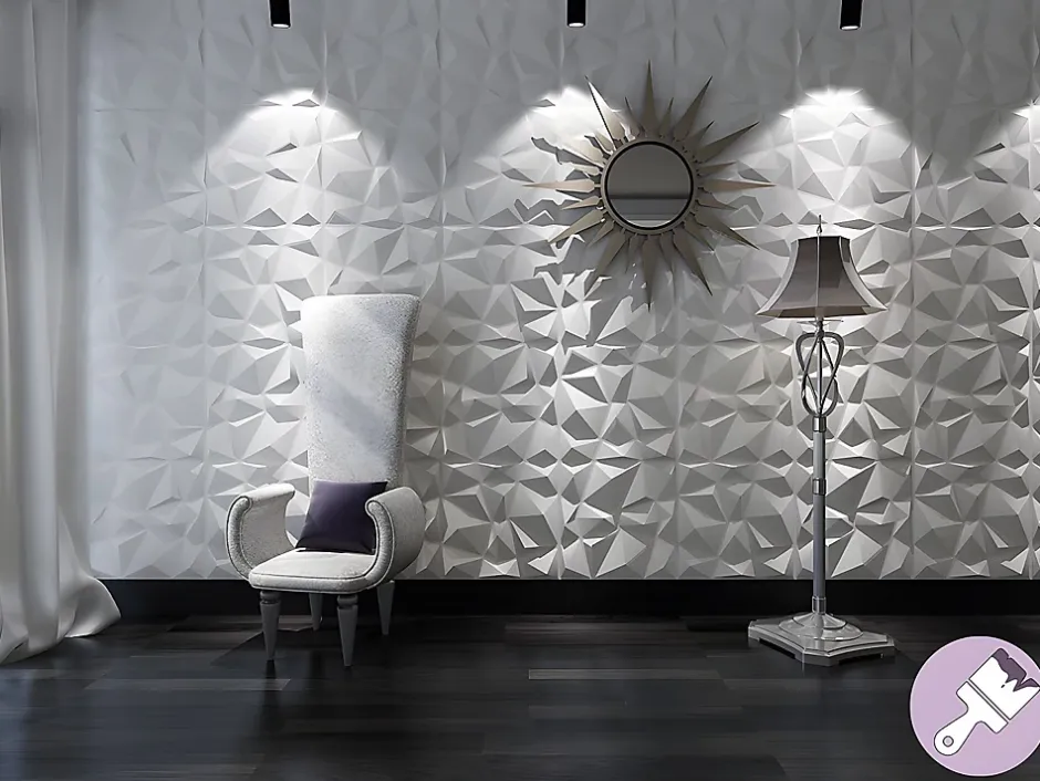 - Panneau mural ANGLY. Panneau mural en relief à peindre. Matière: fibre de canne naturelle. Dimensions d’une plaque: 50 x 50cm. Surface totale: 3m². Se colle au mur.