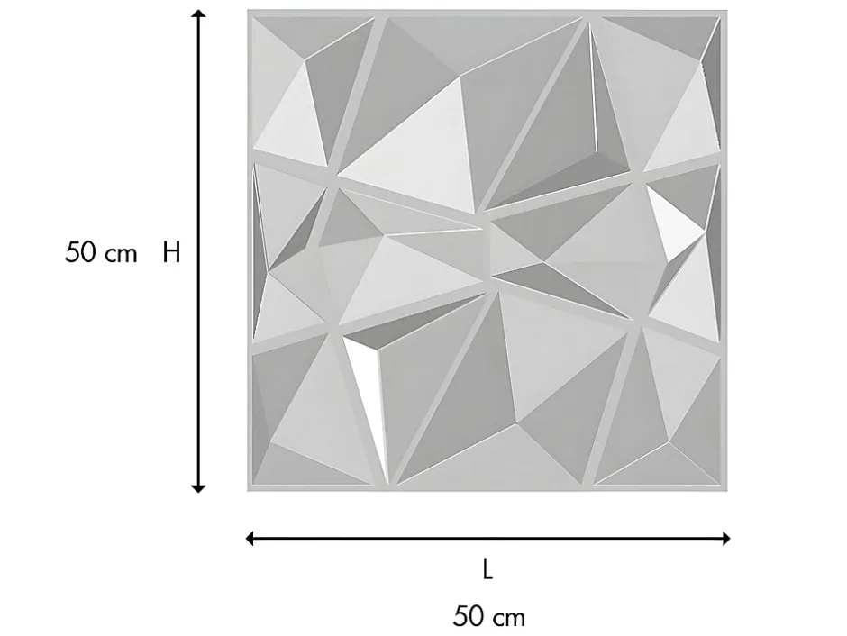 Vous êtes à la recherche d’un moyen audacieux et contemporain pour transformer vos murs ? Ne cherchez pas plus loin que le panneau mural à peindre ANGLY. Avec ses angles géométriques saisissants, ce panneau apportera une dimension artistique et dynamique à votre espace. La pose des panneaux muraux se réalise facilement en 4 étapes : Préparez la surface sur laquelle vous souhaitez installer les panneaux Disposer la colle derrière les panneaux Poser les panneaux sur la surface souhaitée Peignez vos panneaux Caractéristiques Couleur (nuance) : Blanc Matière (précision) : Bambou Thème : Géométrique Type de lot : Lot de 12 Surface (m2) : 3 m2 A peindre : OUI Nombre de plaques : 12 Type de pose : Collé/Cloué Utilisation : Intérieur Traitement : isolant thermique, Isolant phonique : Sans émissions de formaldéhyde Précaution : laisser les panneaux au sol pendant 24h avant leur installationDimensions Longueur : 50 cm Hauteur : 50 cm Profondeur : 0.25 cmLivraison