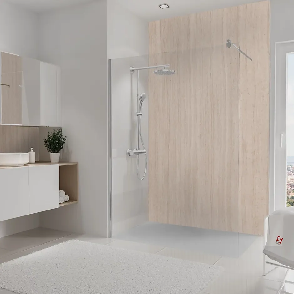 Panneau mural de salle de bains l.100 x H.255 cm, effet travertin romain , Schulte DécoDesign Décor
