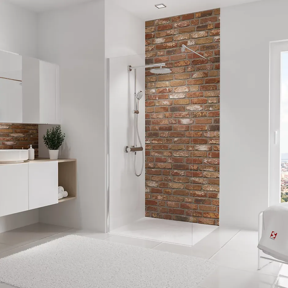 Panneau mural de salle de bains l.100×255 cm, décor briques-industriel, Schulte DécoDesign