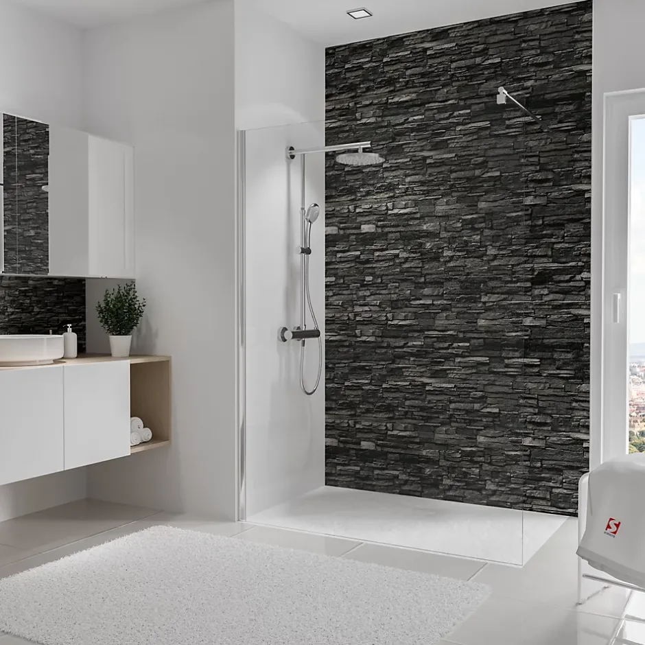 Panneau mural de salle de bains l.150×255 cm, décor parement ardoise, Schulte DécoDesign