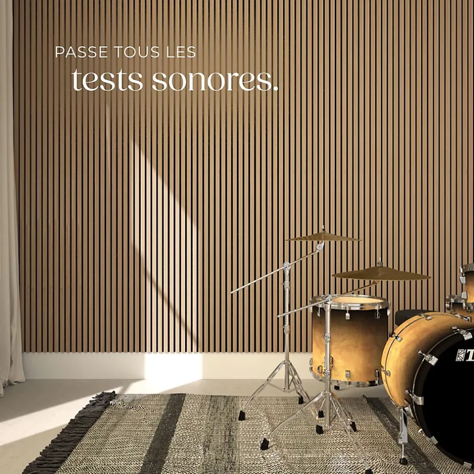 - Points Forts:Ensemble élégant de panneaux acoustiques en MDF haut de gamme et placage en bois véritableExcellente absorption acoustique grâce à la combinaison de feutre et de lamelles de boisDesign moderne dans un style scandinave chaleureuxTaille ajustable grâce à la découpeMontage facile à l'aide de colle ou de visPossibilité d'extension sans jointure avec d'autres ensembles