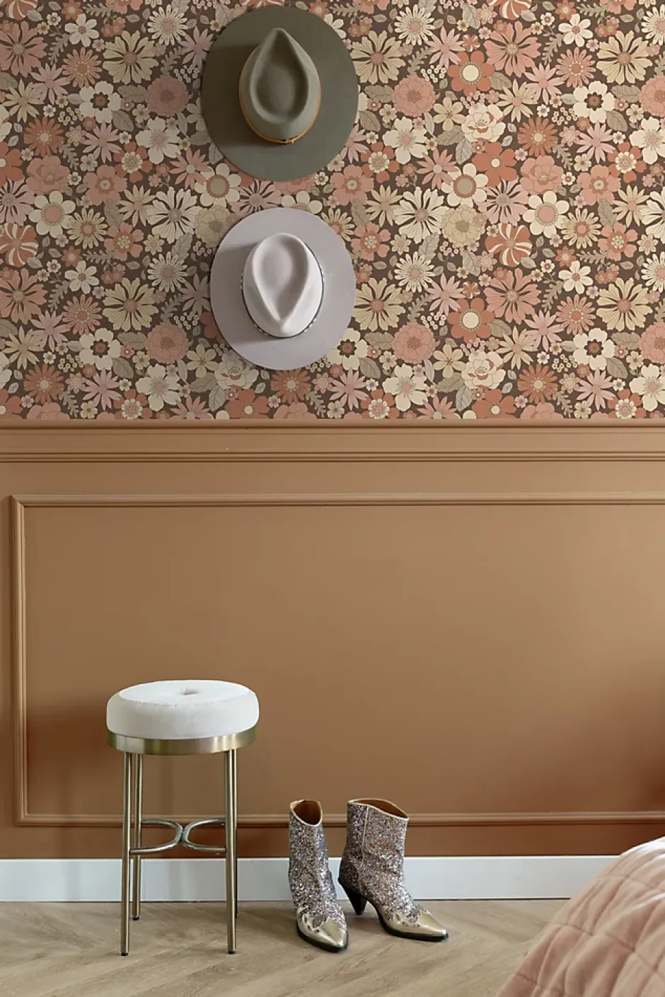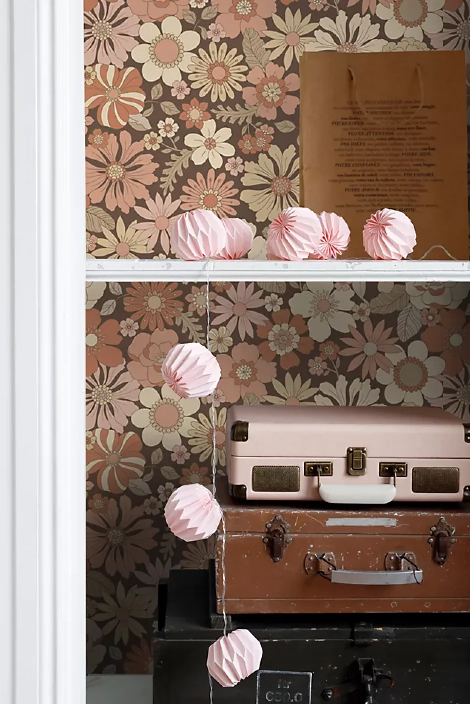 Ce papier peint fleurs rétro en vieux rose et beige confère une ambiance vintage et nostalgique à votre décoration intérieure. Pour la touche finale, n’hésitez pas à utiliser des pièces déco qui semblent débarquer du passé, comme une valise retro ou un pile de vieux livres.Dimensions, répétition du motif et raccordLes dimensions de ce papier peint sont 53 cm x 10. 05 m (largeur x longueur). Le motif se répète tous les 53 cm. Le papier peint a un raccord droit. Le papier peint possède alors des motifs qui traversent le lé et doivent se retrouver sur le lé d’à côté, à la même hauteur. Cela signifie que lors de l’application du lé suivant, le motif doit être appliqué à la même hauteur.Poser ce papier peintCe papier peint intissé est ultra facile à poser: encollez le mur avec de la colle de papier peint et posez le papier peint intissé directement au mur à partir du rouleau. Vous n’aurez pas besoin de une table à tapisser. Le décollage du papier peint intissé est très facile, même après plusieurs années. Pour un résultat optimal, ESTAhome recommande d’utiliser la colle professionnelle Wallpro PRO-301 pour tous les types de papier peint. Conseil de préparation : Évitez les problèmes d’adhérence de votre papier peint en testant au préalable si votre mur est très absorbant. Pour ce faire, prenez une éponge humide et mouillez une petite partie du mur. Si la tache humide disparaît en quelques secondes, le mur est très absorbant. Dans ce cas, nous vous conseillons d’utiliser une couche de fond pour réduire l’absorption. ESTAhome recommande la sous-couche WALL PRO-401 pour papier peint.Prêt à commencer tout de suite!Ajoutez également la colle de papier peint Wallpro PRO-301 et un kit d’outils Wallpro PRO-933 à votre commande. Ce kit d’outils contient tous les outils nécessaires pour la pose du papier peint intissé. De cette façon, vous pouvez commencer tout de suite dès que vous avez reçu votre commande.100% fabriqué aux Pays-BasLe motif est imprimé sur u