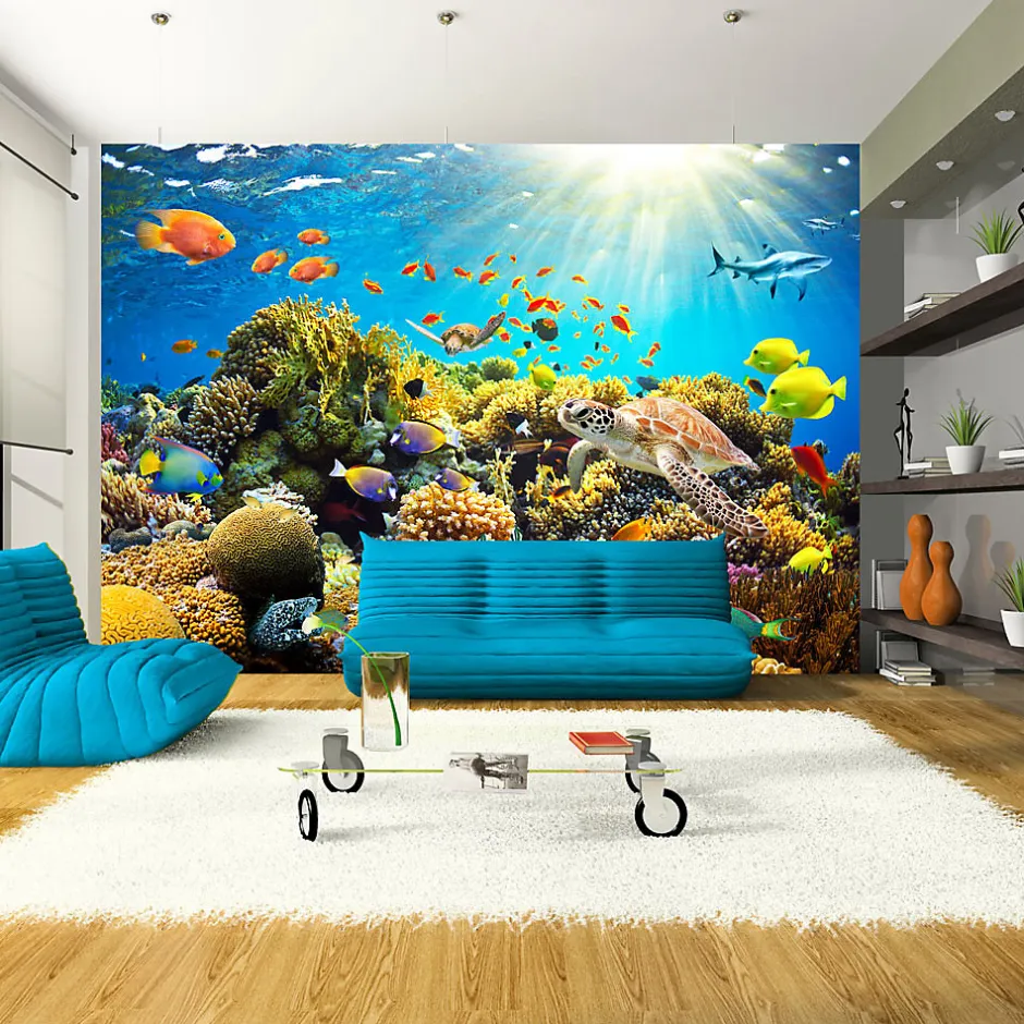 Papier peint intissé Underwater Land. Sublimez votre intérieur avec notre collection de papiers peints tendances – Planete Discount. Solide, résistant à l’eau et aux rayures il est à poser au mur. Papier peint intissé représentant un motif inspiré sera une décoration particulière pour toutes les pièces. les papiers peints intissés sont posés au mur avec une colle speciale. celui-ci peut être posé dans chaque pièce, une salle de bain et dans la cuisine. Il se distingue par une surface demi terne et couvre les imperfections du mur.L’impression numérique de la résolution de 600dpi dans la technologie unique et les couleurs vives de papier peint intissé font remplir votre mur et agrandir votre intérieur. Celui-ci forme une couche isolante et permet aux murs de respirer. L’impression résistante à l’eau est très durable.Chaque papier peint est partagé en lés de 50 cm – Poids: 120 g – Grammage : 110 g – Largeur du rouleau: 50 cm – Technique d’impression: laser (impression thermique) – Dimensions des panneaux par taille Lxh – Pour taille 100×70 cm 2 lès de : 50×70 50×70 – Pour taille 150×105 cm 3 lès de : 50×105 50×105 50×105 – Pour taille 200×140 cm 4 lès de : 50×140 50×140 50×140 50×140 – Pour taille 250×175 cm 5 lès de : 50×175 50×175 50×175 50×175 50×175 – Pour taille 300×210 cm 6 lès de : 50×210 50×210 50×210 50×210 50×210 50×210 – Pour taille 350×245 cm 7 lès de : 50×245 50×245 50×245 50×245 50×245 50×245 50×245 – Pour taille 400×280 cm 8 lès de : 50×280 50×280 50×280 50×280 50×280 50×280 50×280 50×280