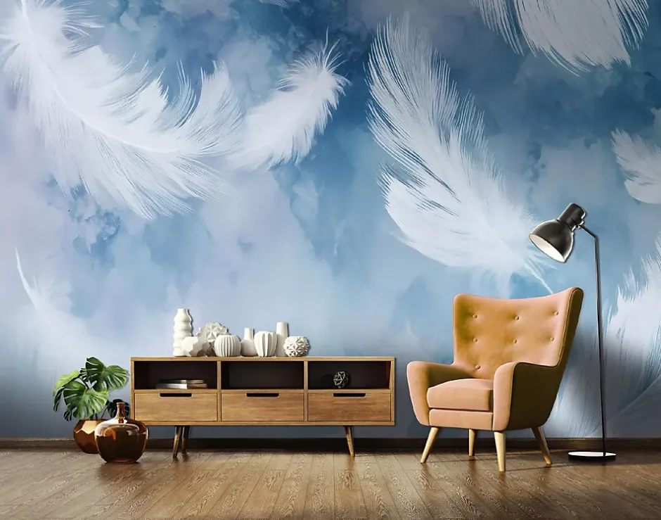 Papier Peint Panoramique Intissé Plumes Abstrait Bleu – 300×210 cm – Papier Peint Chambre et salonTransformez vos murs en véritables œuvres d’art !Plongez dans un univers de design et de sophistication grâce à notre papier peint intissé panoramique. Parfait pour sublimer n’importe quel espace, ce produit offre une combinaison unique de style et de praticité.- Colle spéciale et instructions incluses : Nous simplifions votre expérience de décoration : chaque rouleau de papier peint est livré avec une colle spéciale et des instructions détaillées pour garantir une installation sans tracas, même pour les débutants.- Montage rapide et facile : Grâce à la conception intissée, le processus d’installation est non seulement rapide mais également propre. Appliquez simplement la colle au mur, posez le papier peint, et admirez le résultat !- Optique unique : Offrez à vos murs un style inimitable avec des motifs panoramiques captivants qui attirent tous les regards. Idéal pour créer une atmosphère chaleureuse et accueillante.- Matériau robuste : Fabriqué à partir de matériaux de haute qualité, notre papier peint est résistant aux déchirures et durable, tout en étant facile à entretenir. Une solution parfaite pour les espaces de vie modernes.- Assemblage facile : Avec des dimensions bien conçues et des raccords impeccables, l’assemblage des panneaux est un jeu d’enfant. Aucune compétence professionnelle requise !Pourquoi choisir notre papier peint panoramique ?Parce qu’il vous permet de personnaliser votre intérieur de manière simple et élégante, tout en garantissant un résultat impeccable et durable.