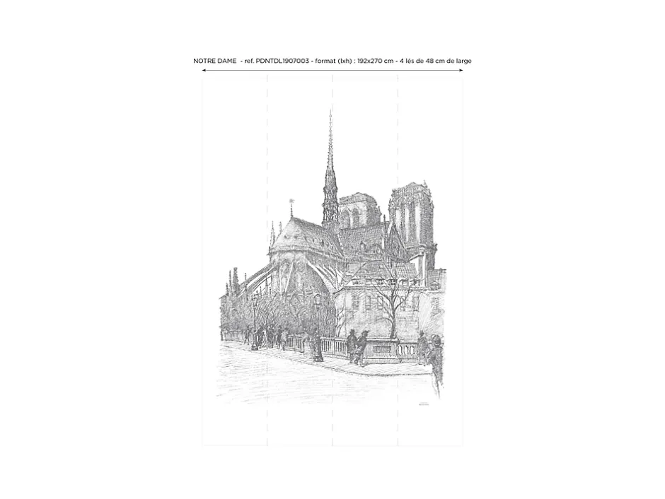 FORMAT : (L x H) 192 x 270 cm, 4 lésRACCORDABLE : NonPapier peint intissé mat 150g – Certifié FSCClassé non feu CS1Fabriqué et imprimé en France Nos conseils de pose