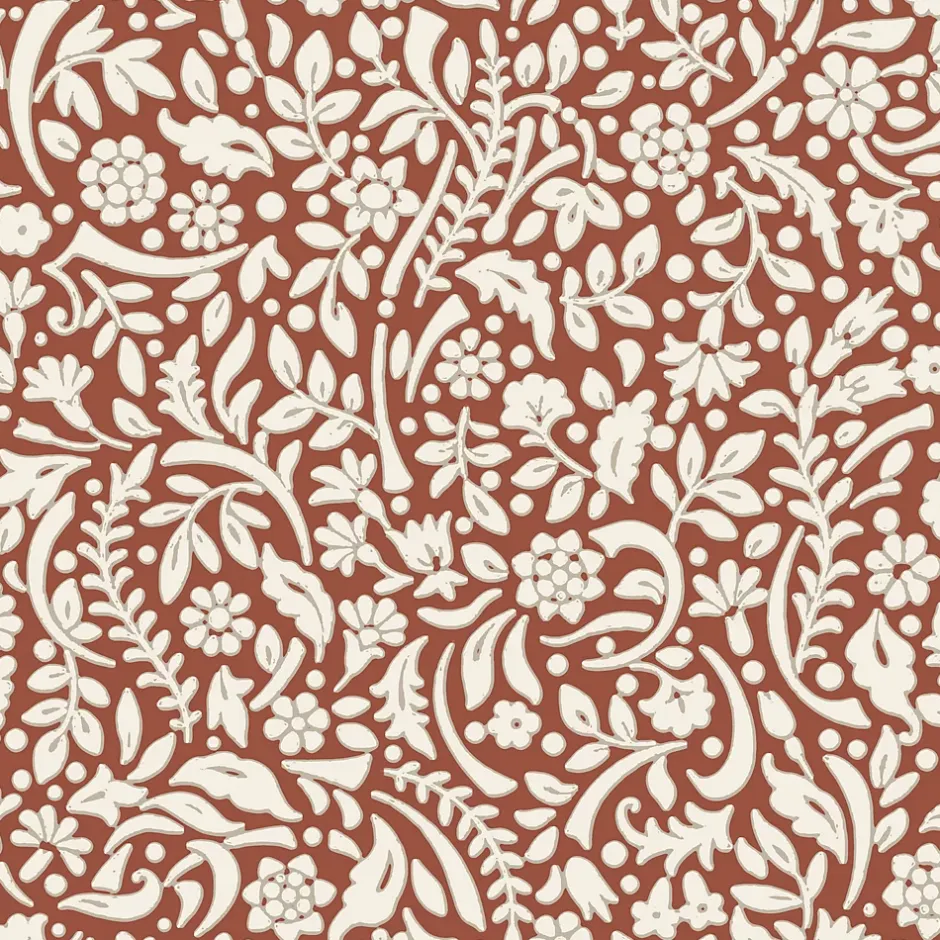 Papier peint vinyle intissé Flaumig GoodHome motif floral terracotta L. 10,05m x l. 0,53m