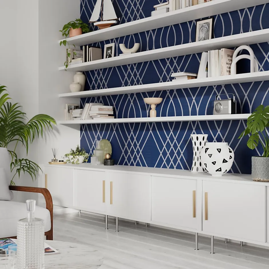 Papier peint à motif vinyle intissé GoodHome Mavi effet glitter bleu