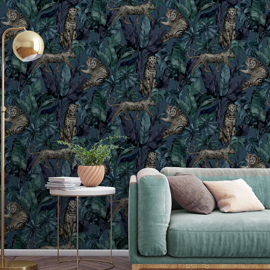 Papier peint à motif vinyle intissé GoodHome Onax effet tissu sarcelle