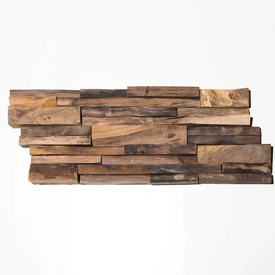 Pour une décoration d’intérieur chaleureuse, choisissez le parement bois en teck recyclé vieilli.Ce revêtement mural est idéal pour donner à votre salon ou votre entrée une ambiance naturelle et accueillante.Le teck vous donne l’assurance d’une longévité exceptionnelle ainsi que des perspectives esthétiques très riches et variées.Ces plaquettes de parement conviennent également pour votre espace extérieur.Découvrez tous nos parements et revêtements ici.