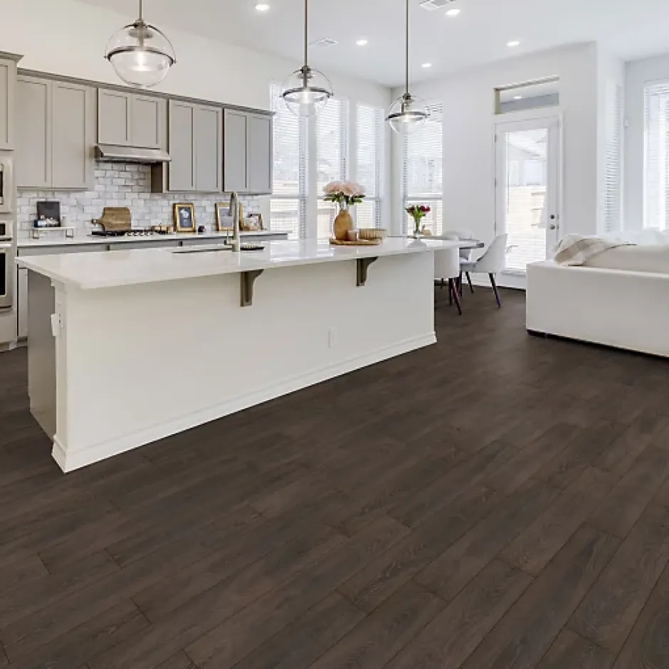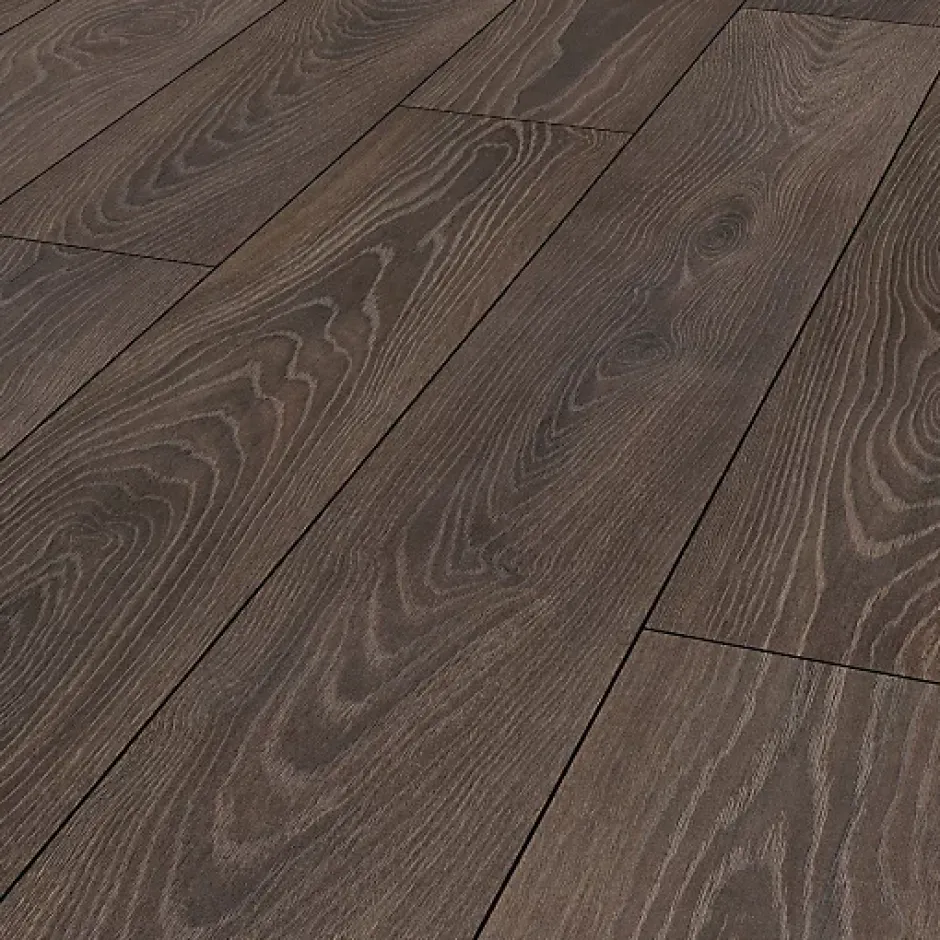 Paquet de 6 lames de parquet flottant stratifié ter Hürne Cuisine et salle de bain – Lames larges – Chêne Cocoa, compatible pièces humides, fabrication allemande, 1,507 m²/paquet. Ce sol stratifié, composé à 90% de bois et matériaux organiques, est hydrofuge, robuste, antibactérien et facile à entretenir, idéal pour cuisines, salles de bains et foyers avec animaux. Le système clipsable «Smart Connect Pro Aqua» assure une résistance à l’eau stagnante de 48 h (éclaboussures, verre renversé, gamelle). Le montage est rapide et fiable, avec un profil limitant la pénétration d’eau (en pose collée). Caractéristiques principales : • Garantie : 30 ans usage domestique, 5 ans usage commercial • Dimensions : 128,8 x 19,5 cm, épaisseur 12 mm • Pose : Flottante, sans colle, système clic SmartConnect Pro Aqua • Compatibilité chauffage au sol : Jusqu’à 26°C (système à eau uniquement) • Classements : Usage domestique 23, commercial 33, COV A+, formaldéhyde E1 • Résistances : Rayures AC5, poinçonnement 0,05 mm, glissements DS • Fabrication : Allemagne • Poids : 16,5 kg/paquet • Construction : Couche de surface en résine précieuse et corindon • Décor en fibres de bois, support en fibre de bois extrêmement comprimé • Dossier en cellulose • Pour planchers chauffants, vérifiez l’humidité (0,3% pour chapes anhydrites, 1,8% pour ciment). Joint de dilatation nécessaire pour grandes pièces. Surface traitée antibactérien. • Couleur : Il peut y avoir de lègères variations selon les productions