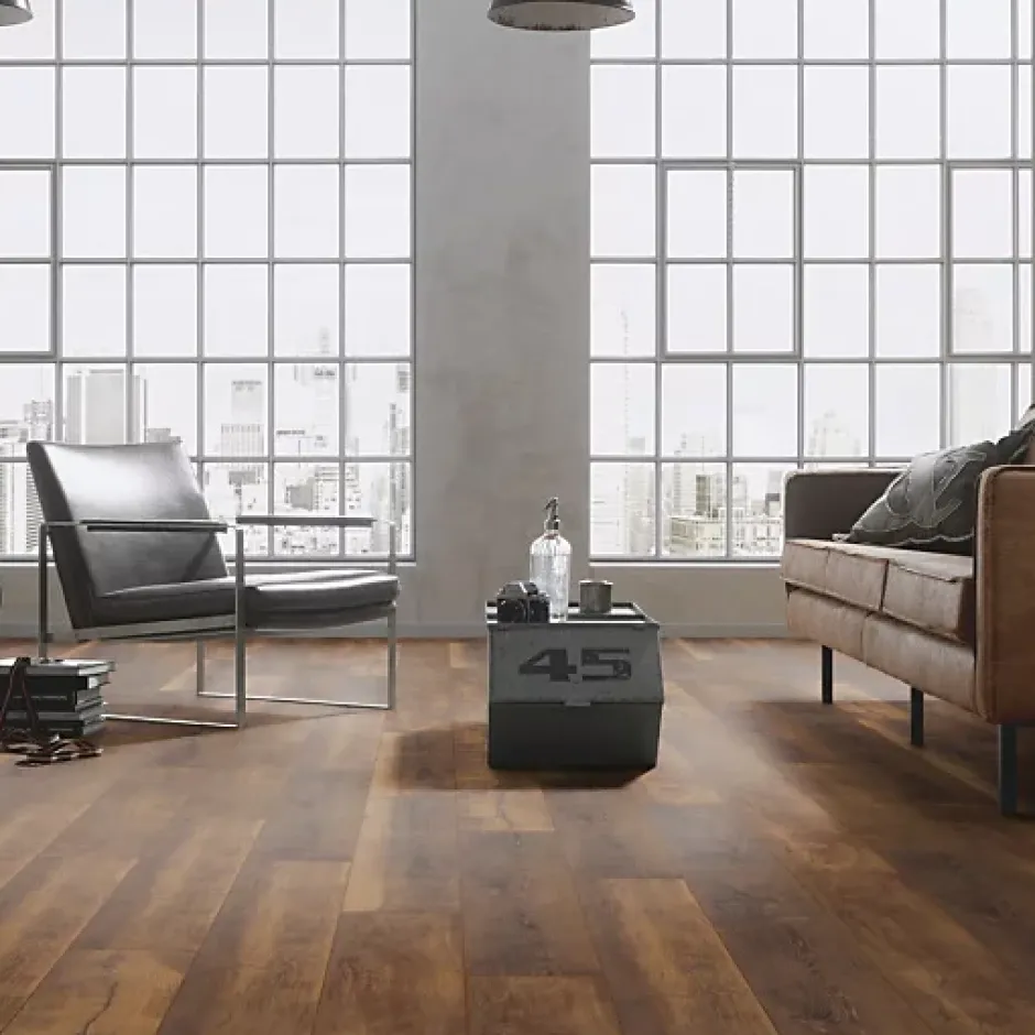 Parquet stratifié flottant ter Hürne Cuisine et salle de bain – Lames larges – Chêne Jamaica – Compatible pièces humides Sol stratifié haut de gamme, fabriqué en Allemagne, composé à plus de 90 % de matériaux biologiques. Ce parquet est adapté aux pièces humides (pose collée) grâce à la technologie SEAL, qui protège le sol jusqu’à 48 heures contre les liquides en surface, réduisant ainsi les risques de gonflementCaractéristiques • Dimensions des lames : 128,8 x 19,5 cm, épaisseur 12 mm• Surface par paquet : 1,507 m² (6 lames)• Pose : Flottante sans colle, avec système Clic SmartConnect Pro Aqua pour une installation rapide et fiable• Composition : Support en bois extrêmement comprimé, couche décorative en fibres de bois, couche protectrice en résine et corindon• Résistances : À l’humidité (≤ 5 %), aux rayures (AC5), aux glissements (DS), aux poinçonnements (≤ 0,05 mm)Performances et compatibilités :• Chauffage au sol : Oui, jusqu’à 26°C (système à eau uniquement)• Classements : Domestique intense (classe 23) et commercial (classe 33)• Antibactérien et antistatique : Oui• Classe feu : Bfl-s1Avantages : • Garantie de 30 ans en usage domestique et 5 ans en usage commercial• Compatible avec les pièces à vivre et humides, comme la salle de bain ou la cuisineUn parquet esthétique, durable et facile à poser, idéal pour des espaces modernes et sains