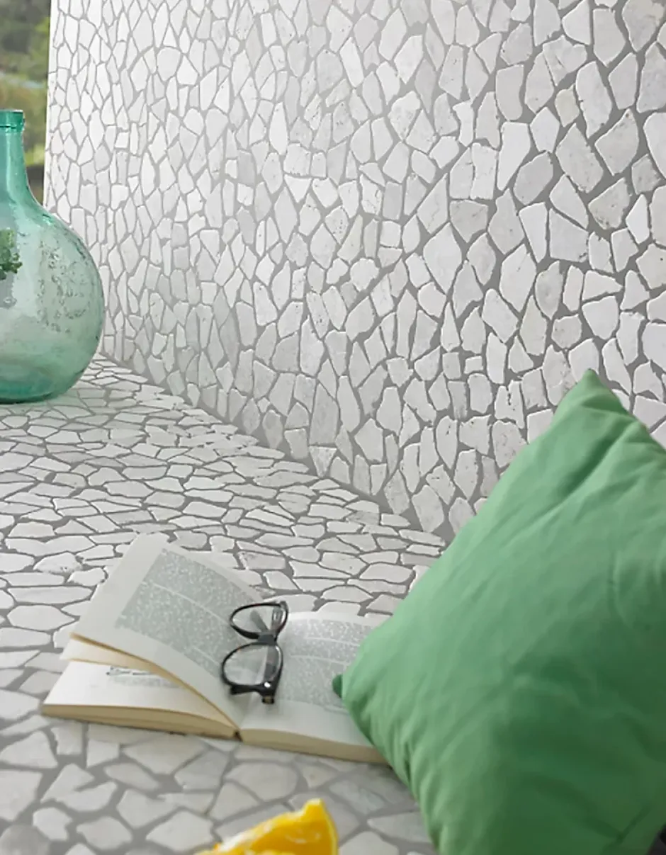 Boite de 11 plaques de mosaïque en marbre naturel à poser au mur ou au sol.À utiliser en tant que listel ou seule pour mettre en valeur un mur.Fragments de marbre naturel taillés à la main.Instructions d’entretien :N’utilisez pas de chiffons abrasifs ni de nettoyants corrosifs.Toujours respecter les instructions du fabricant concernant le mortier-colle et les joints de carrelageDimensions :- Boîte de 11 pièces: 33 x 33 x 14,5 centimètres- Trame : 30×30 cm- Epaisseur : entre 0,9 et 1 cm- 1 boîte: 1 m2Matériaux : Marbre naturelCouleur : blanc Poids : 24 kg