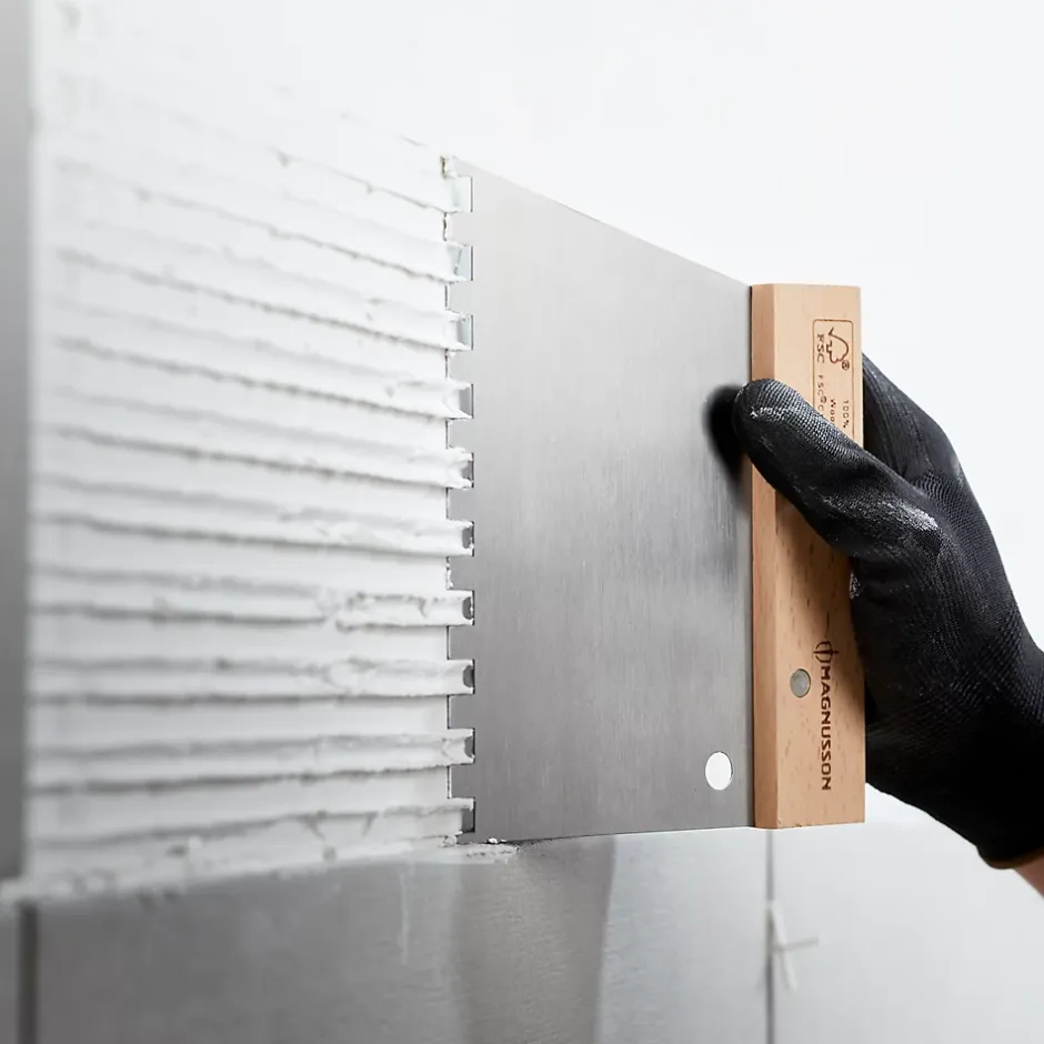 Ce peigne à colle U9 pour carrelage Magnusson est conçu pour étaler la colle pour carrelage de manière régulière sur les murs. Grâce à sa lame en acier résistante et sa poignée en bois, cet outil garantit une grande durée de vie, même lors d’une utilisation intensive et prolongée. Les encoches carrées de 9mm permettent une utilisation avec des carreaux d’une taille maximale de 600 x 600mm. Dispose d’une garantie à vie