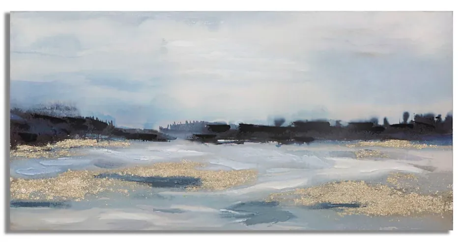 Tableau sur toile avec cadre en bois. Ce motif abstrait rappelle la silhouette d’une ville côtière et apporte une touche d’élégance à n’importe quel mur. Convient à tous les styles de décoration. Dimensions : 120 x 60 cm, épaisseur du cadre : 2,8 cm.