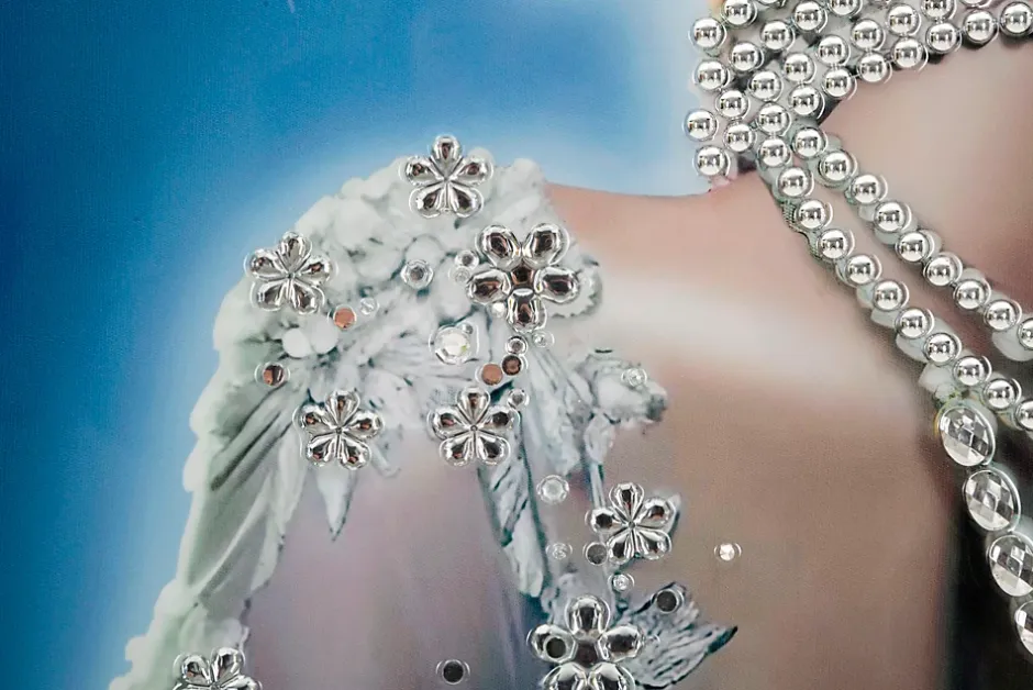 Cette peinture sur toile, encadrée dans un cadre en bois et un cadre en métal argenté, exprime une élégance et un raffinement intemporels. La figure féminine, ornée de fleurs et de bijoux scintillants, respire la grâce et le luxe. Parfaite pour les intérieurs raffinés, elle apporte une touche de charme et de féminité. Avec des applications en relief. Dimensions : 72 x 4 x 102 cm.