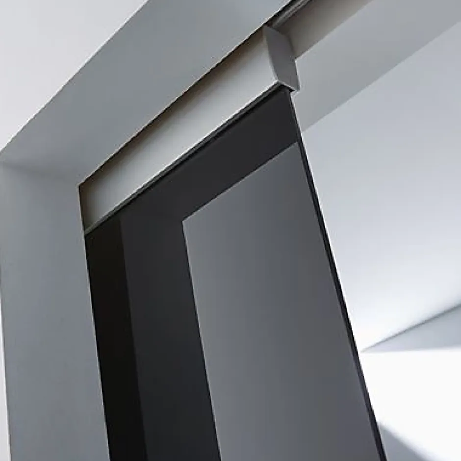 Pince verre permettant de réaliser une porte coulissante en verre en galandage avec INTEGRA SOFT ou en applique avec VISIONNAIRE. Systéme de qualité necessitant une kit de finition pour porte verre Art SAP 100179137