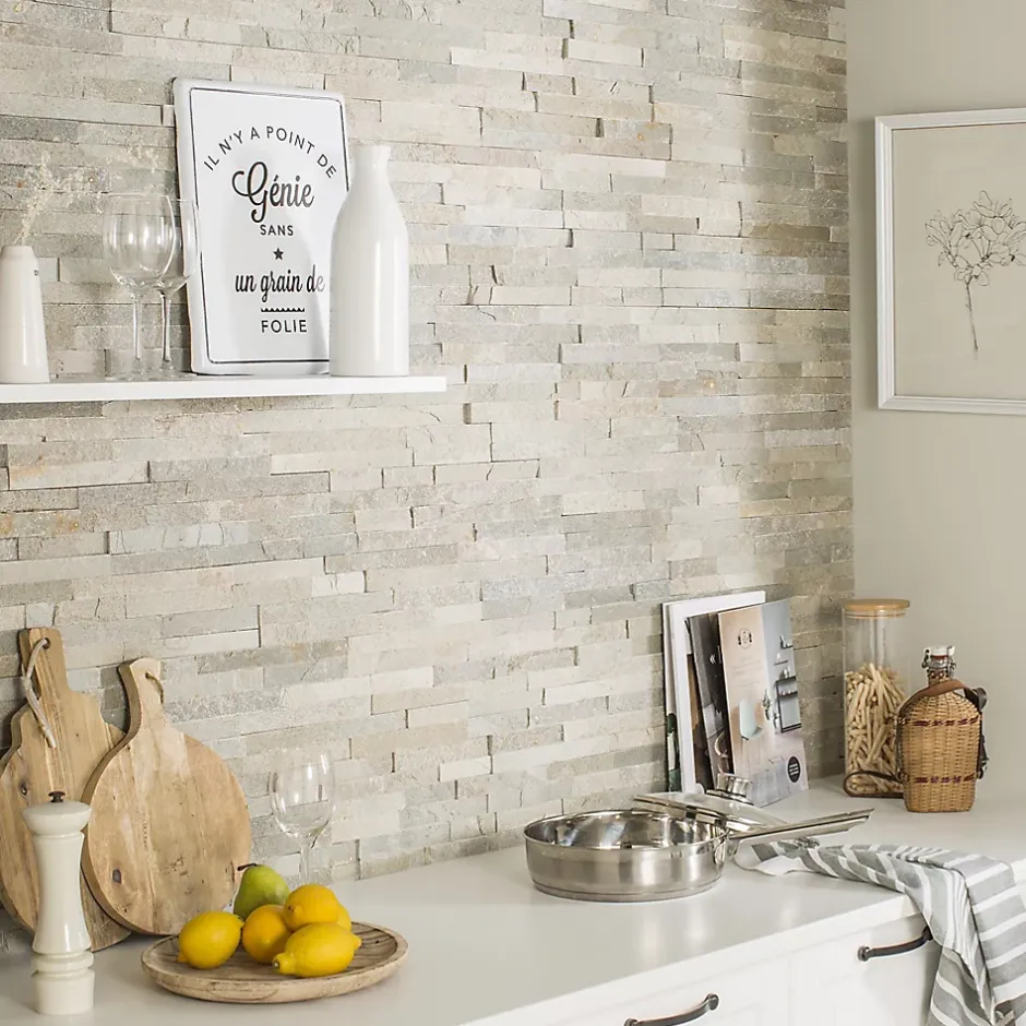 Ces plaquettes de parement en pierre naturelle, aspect marbre, sont idéales pour embellir vos murs intérieurs et extérieurs sans entreprendre de gros travaux. Faciles à installer grâce à leur pose collée, sans joint, elles donneront du cachet à votre décoration intérieure. Coup de coeur assuré