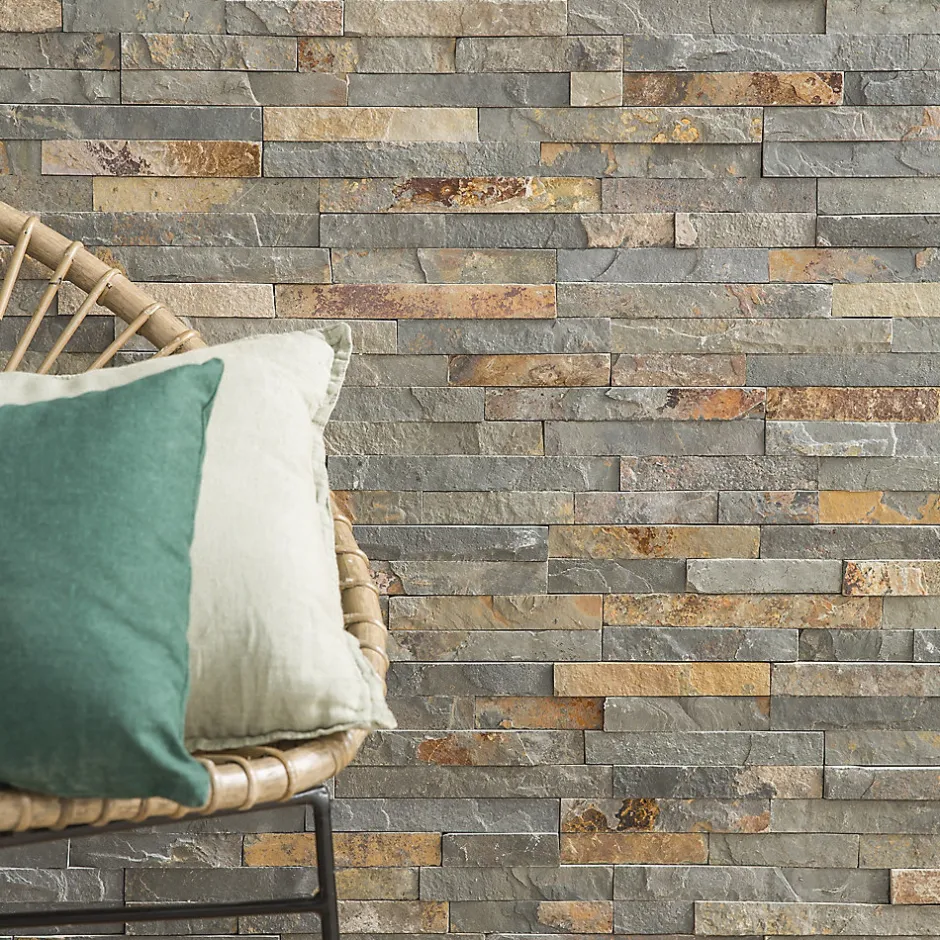 Plaquette de parement Slim 2 pierre naturelle multicouleur (vendue au carton)