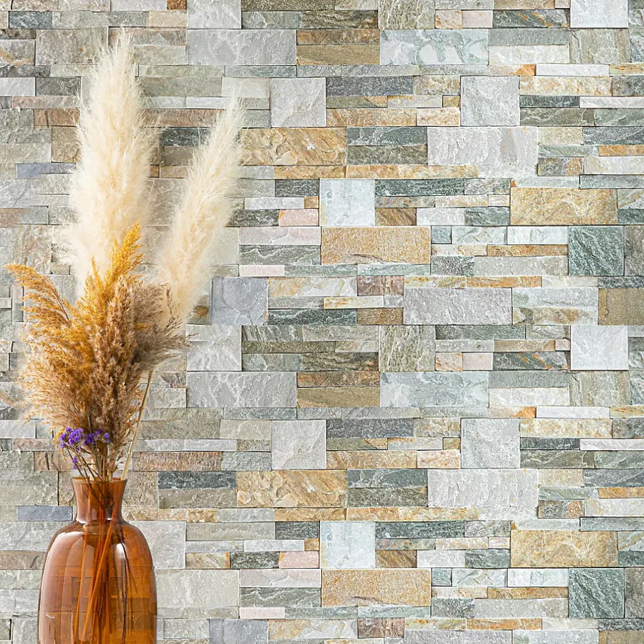 Transformez facilement votre espace intérieur ou extérieur avec la plaquette Slim Multiformat ! La gamme de plaquette de parement en pierre naturelle Slim Multiformat est la solution idéale pour habiller les murs et façades. Résistant aux intempéries et à la chaleur, ce parement se pose partout et embellit vos pièces dans le temps et de façon pérenne. Slim Multiformat se caractérise par sa variété de pierres naturelles authentiques de formes et d’épaisseurs différentes. Ces pierres calibrées sont assemblées entre elles pour former un parement prêt à poser. Les teintes subtiles du beige rosé viennent s’harmoniser avec la douceur du gris clair, créant une atmosphère apaisante dans votre intérieur. La variété de nuances de Slim Multiformat permet de s’accorder facilement avec une multitude de décorations. La pose sans joints et le calibrage des différentes plaquettes permet une pose facile en un temps record, quelque soit votre niveau de bricolage. La forme en puzzle de Slim Multiformat limite les effets de jointure visuels du produit pour un rendu plus vrai que nature. afin d’obtenir un rendu esthétique, nous conseillons fortement de mélanger l’ensemble des plaquettes dans les différentes boîtes aléatoirement avant d’effectuer la pose. Slim Multiformat convient parfaitement derrière un poêle à bois. Photos non contractuelles.