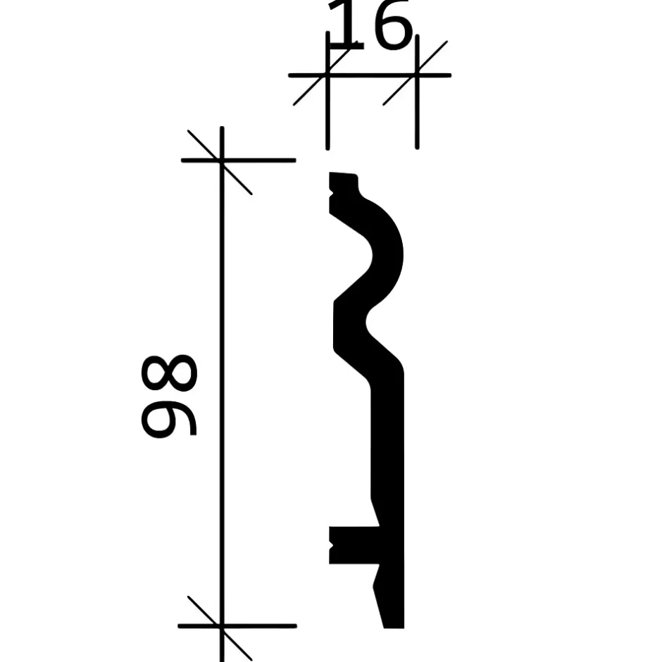 - Plinthe, dimensions: 200 cm x 1,6 cm x 9,8 cm. La surface est prétraité