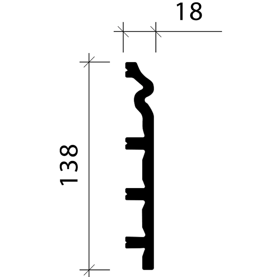 - Plinthe, dimensions: 200 cm x 1,9 cm x 13,8 cm. La surface est prétraité