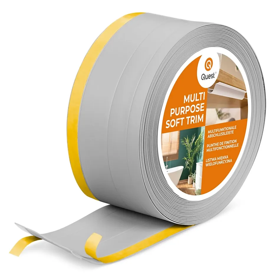 Plinthe de finition W2 en PVC 4,en,1 120 mm, baguette autocollante, masquante, plinthe souple pour sol et mur, gris, 15 m-Quest Sale