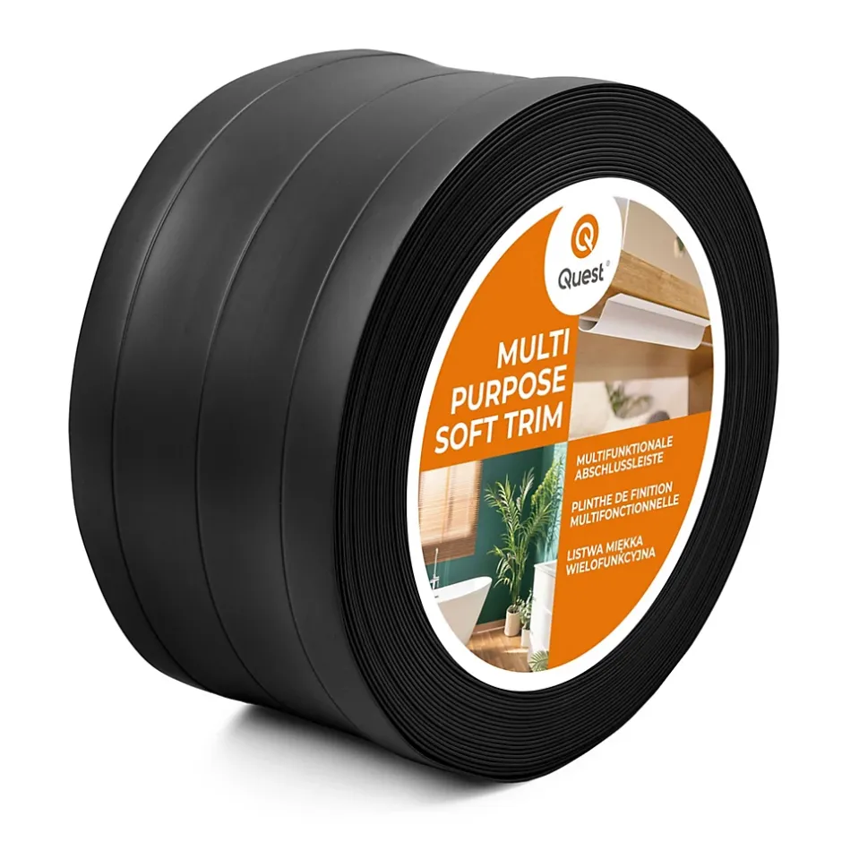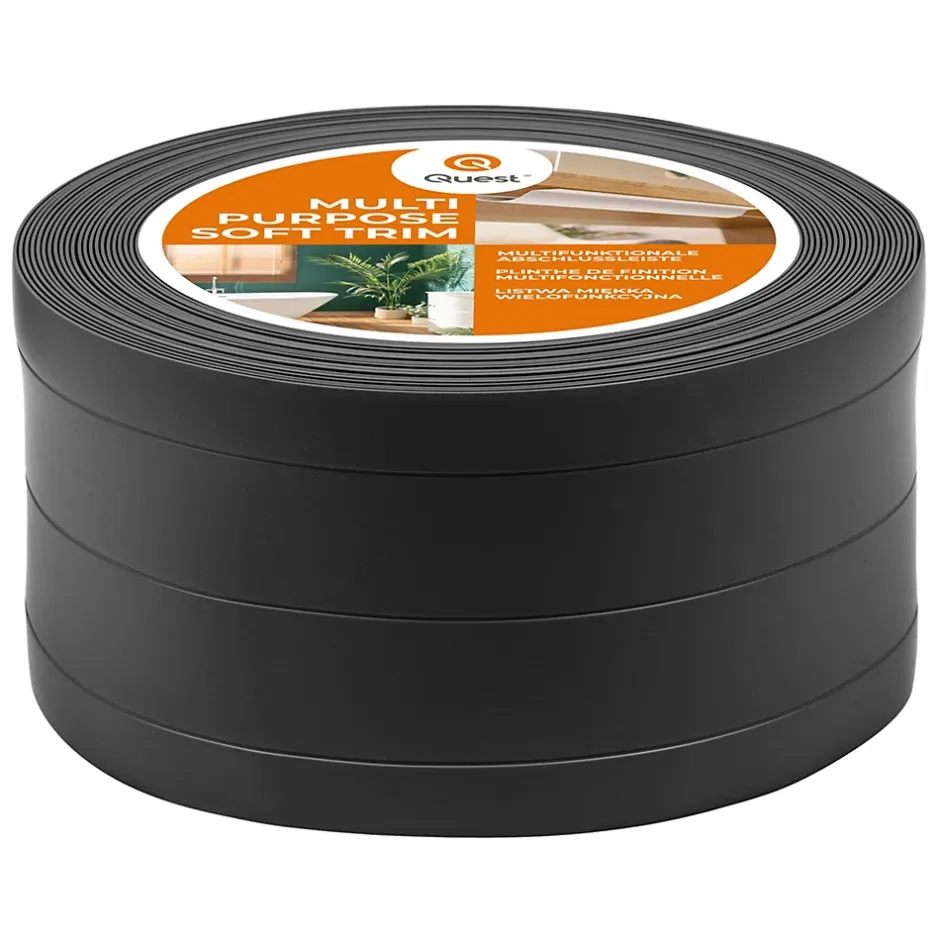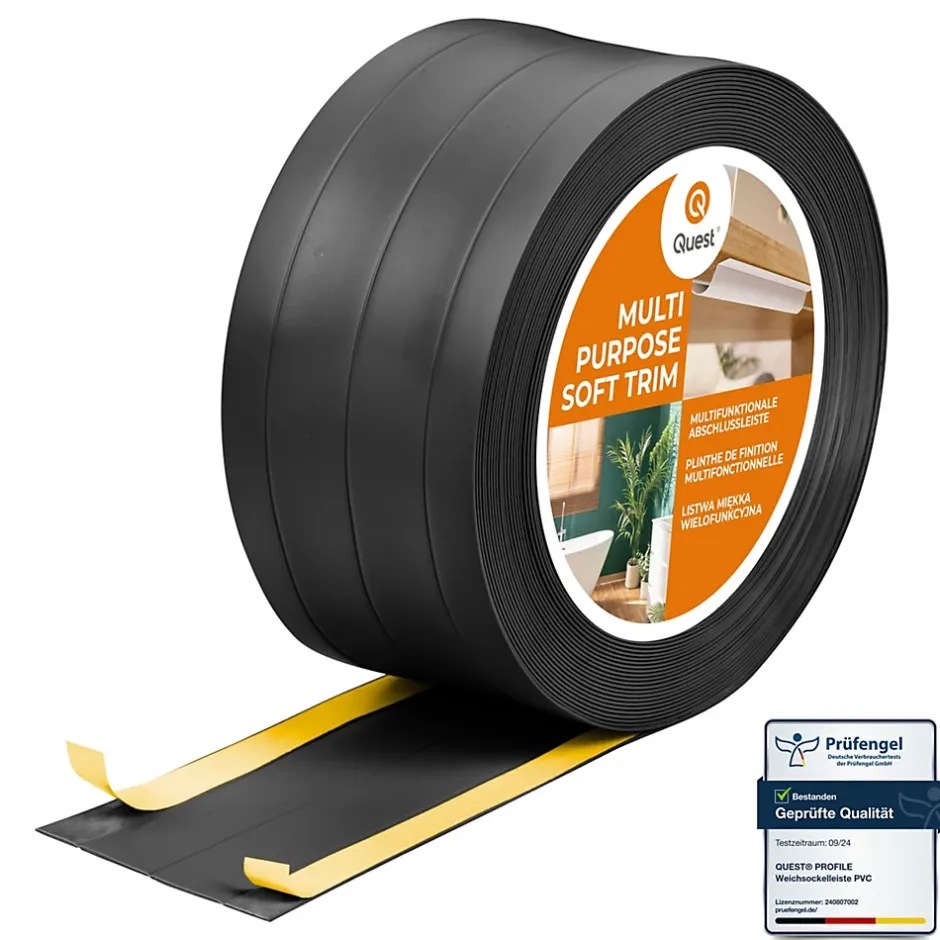 Plinthe de finition W3 en PVC 4,en,1 120 mm, baguette autocollante, masquante, plinthe souple pour sol et mur, noir, 15 m-Quest Hot