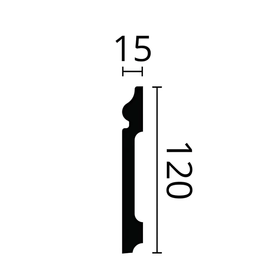 - Plinthe, dimensions: 200 cm x 1,5 cm x 12 cm. La surface est prétraité