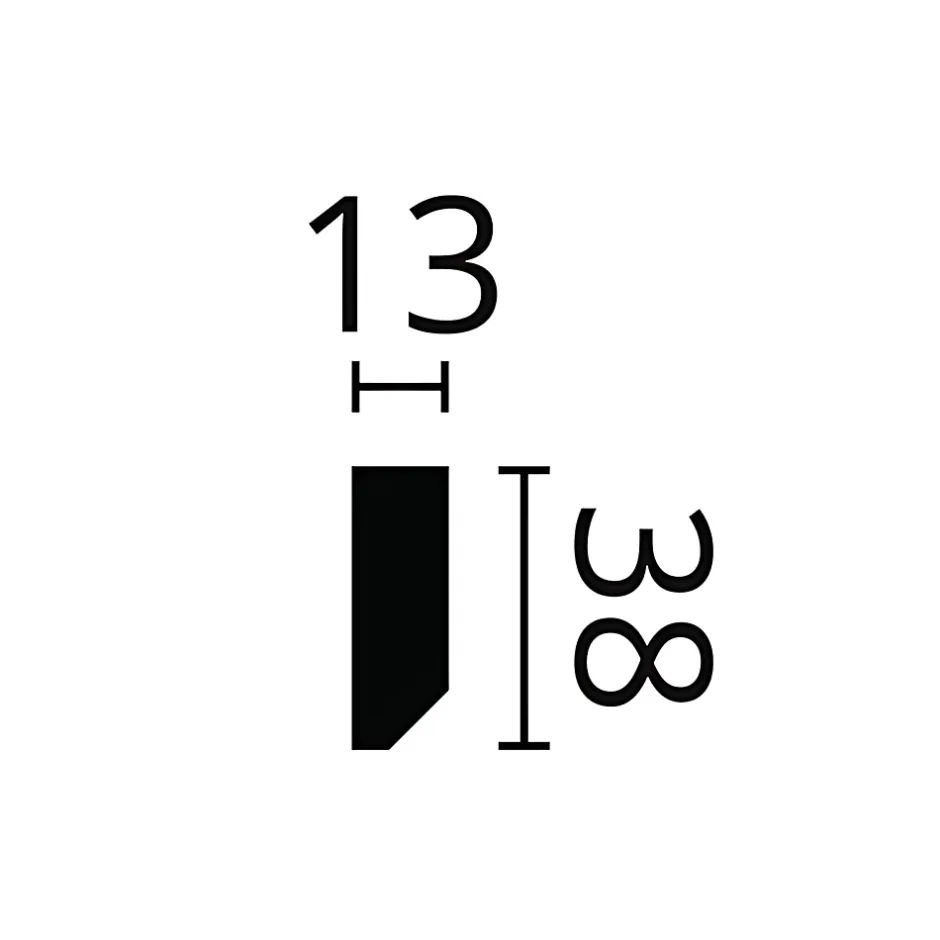 - Cimaise, dimensions: 200 cm x 1,3 cm x 3,8 cm. La surface est prétraité