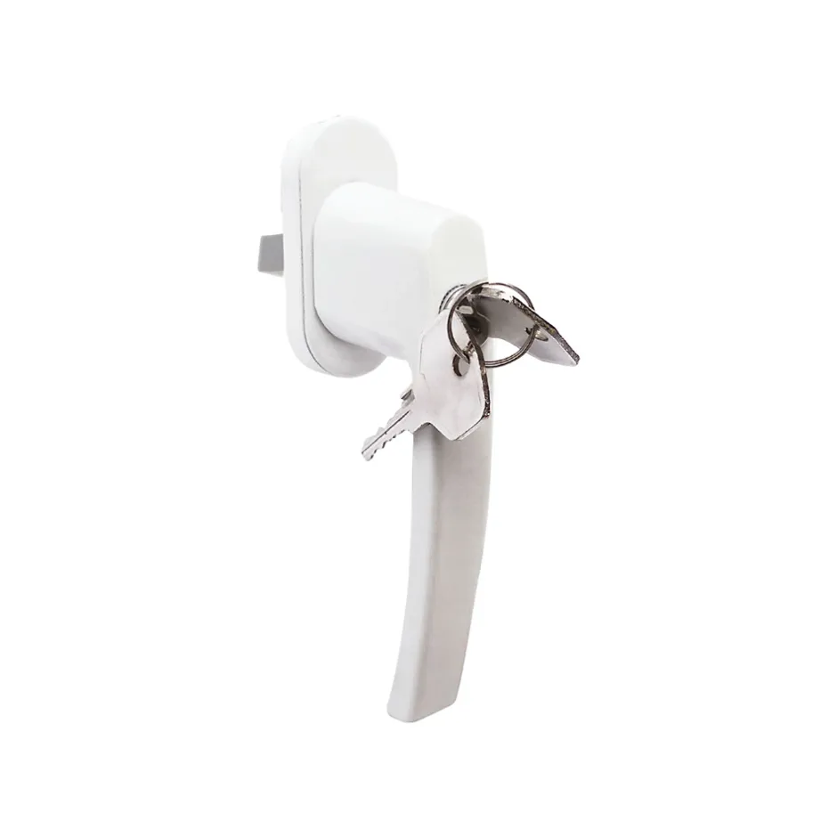 Poignée alu à clé blanc pour fenêtre L.125mm