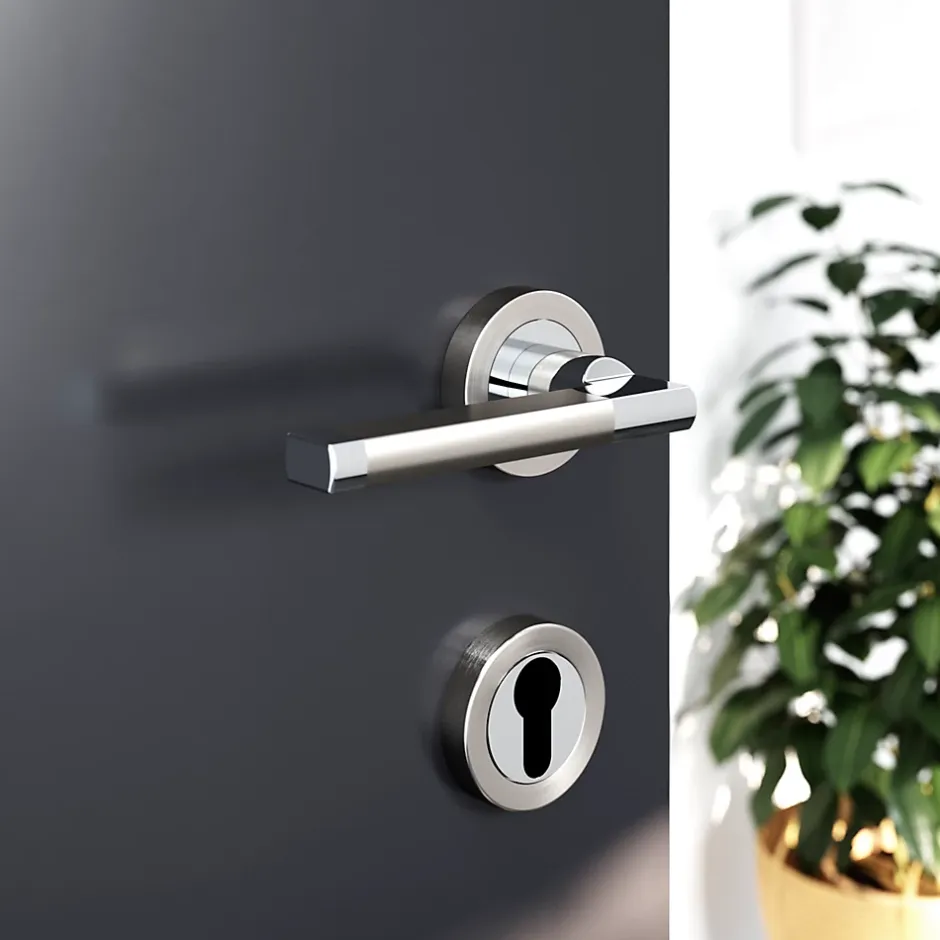 Poignée de porte droit à visser effet chrome satin gris Ø52mm GoodHome, Jaslo