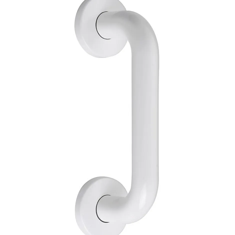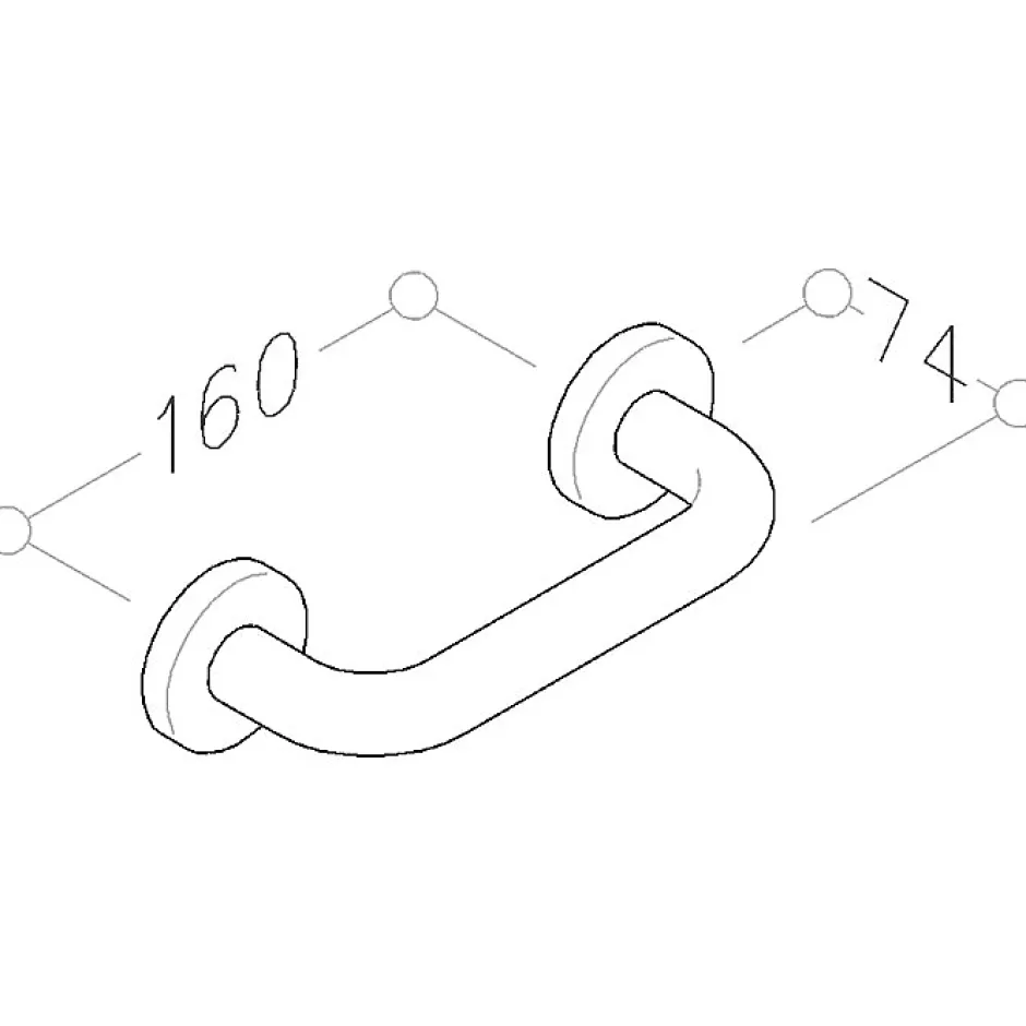 Longueur poignée : 183 mm Diamètre : 23 mm Fixation non traversante avec rosace Ø 55 mm Entraxe de fixation : 160 mm Livrée sans vis (vis à bois Ø5 mm)