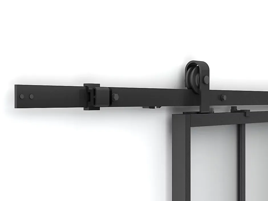 - Porte coulissante Mdf, Panneau et dérivés de bois, Aluminium, Verre trempé, Acier Noir