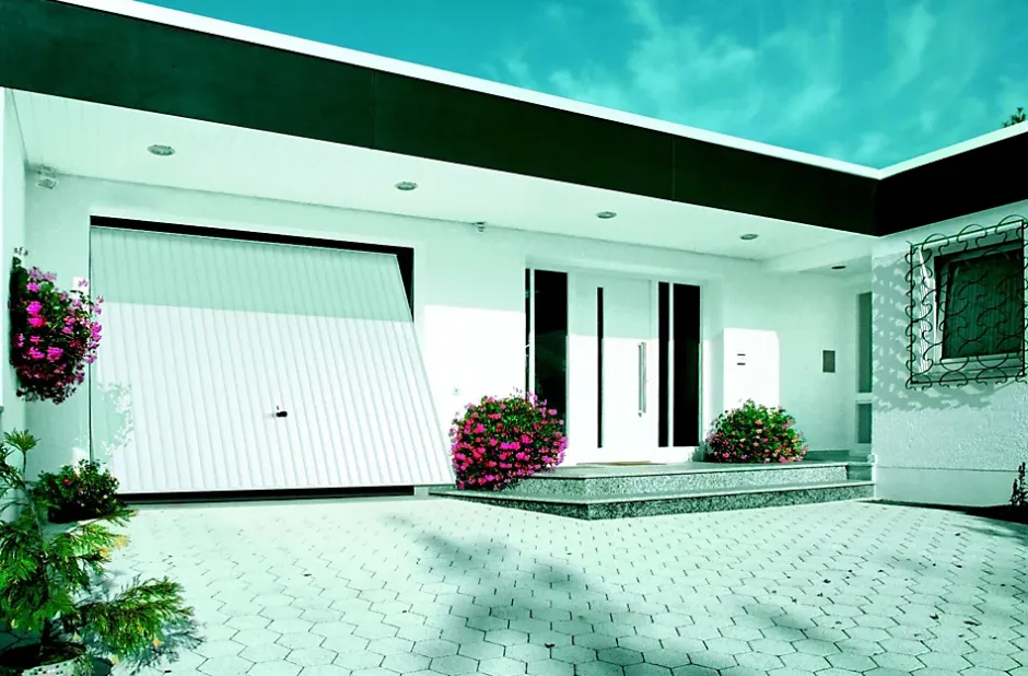 - Porte de garage basculante débordante, avec rails de retour