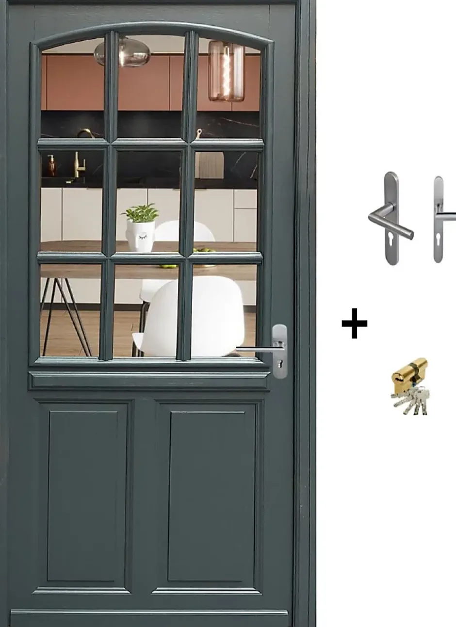 La porte d’entree « Alexa » combine elegance et fonctionnalite, offrant une solution ideale tant pour les espaces residentiels que professionnels. Fabriquee en bois de haute qualite avec une finition en gris RAL7016, cette porte presente un design vitre qui permet une belle entree de lumiere tout en garantissant votre intimite. Ses dimensions est de H215 x L90 cm (219,5 x 87,8 cotes totale hors tout). equipee d’une poignee et d’un barillet de securite, la porte Alexa assure une securite optimale et une manipulation aisee.