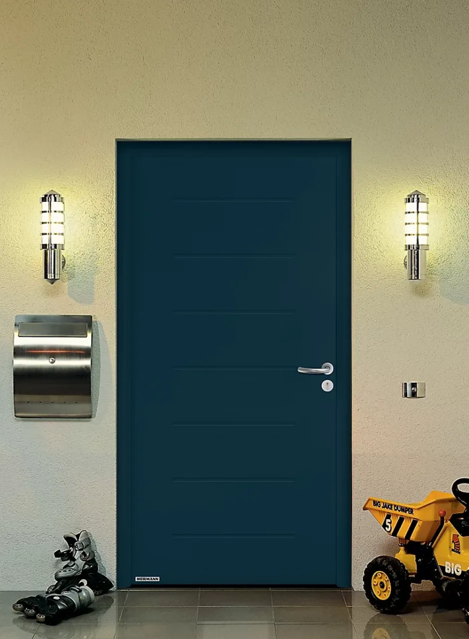 Porte d’entrée Hörmann acier galvanisé l.90 x h.215 cm poussant gauche THP015 gris anthracite ral 7016