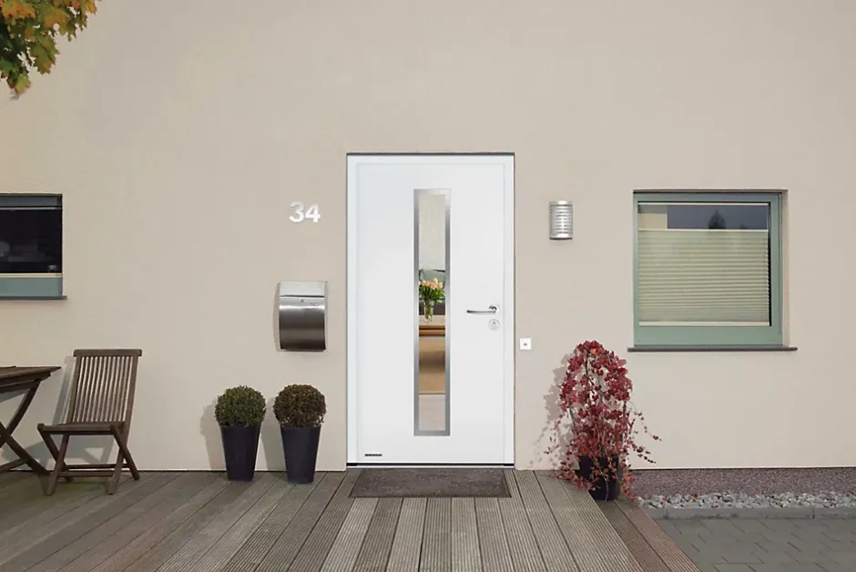 Porte d’entrée Hörmann acier galvanisé l.90 x h.215 cm poussant gauche THP700N blanc ral 9016