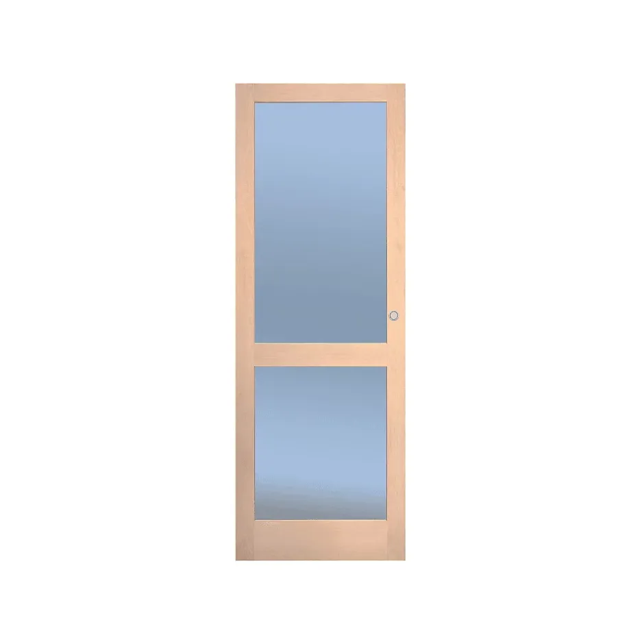 Porte nue, vendue sans cadre en bois Bouleau Access 83 cm, 2 carreaux, Traverse droite, à recouvrement. Caractéristiques des portes en bois bouleau : Portes de 40mm d’épaisseur Sans perçage ni ferrage ni serrure ni huisserie Panneaux MDF plaqués 1er choix Porte filmée à l’unité En lamellé de bois massif revêtu d’un placage bois Poids porte 83 cm : 26 kg A noter que le vitrage est un verre trempé flouté (pas transparent) et simple vitrage.A noter que les portes 2 et 4 carreaux est un vitrage blanc opaque.Attention : Photos non contractuelles Poignées vendues séparément. Pas de reprise ni remboursement.