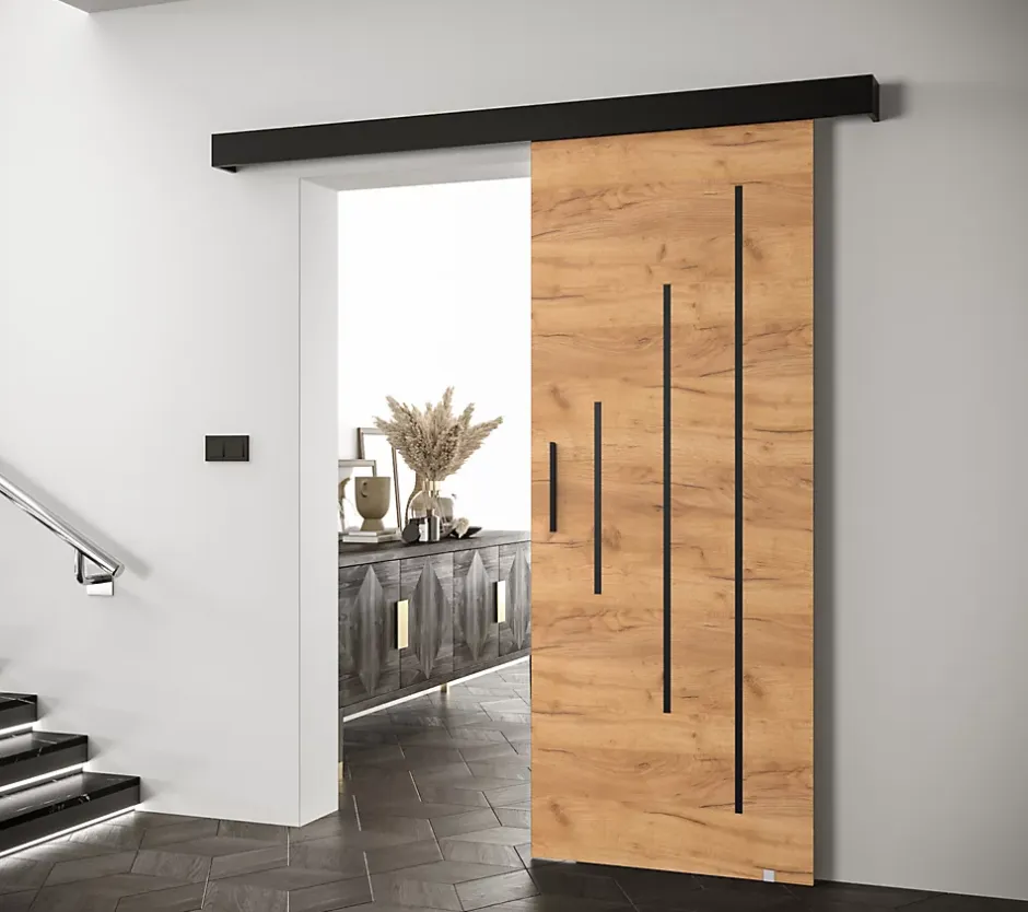 Portes coulissantes Salwador Y 90x204 cm (Chêne Craft / Noir / Noir)-Abiks Meble Hot
